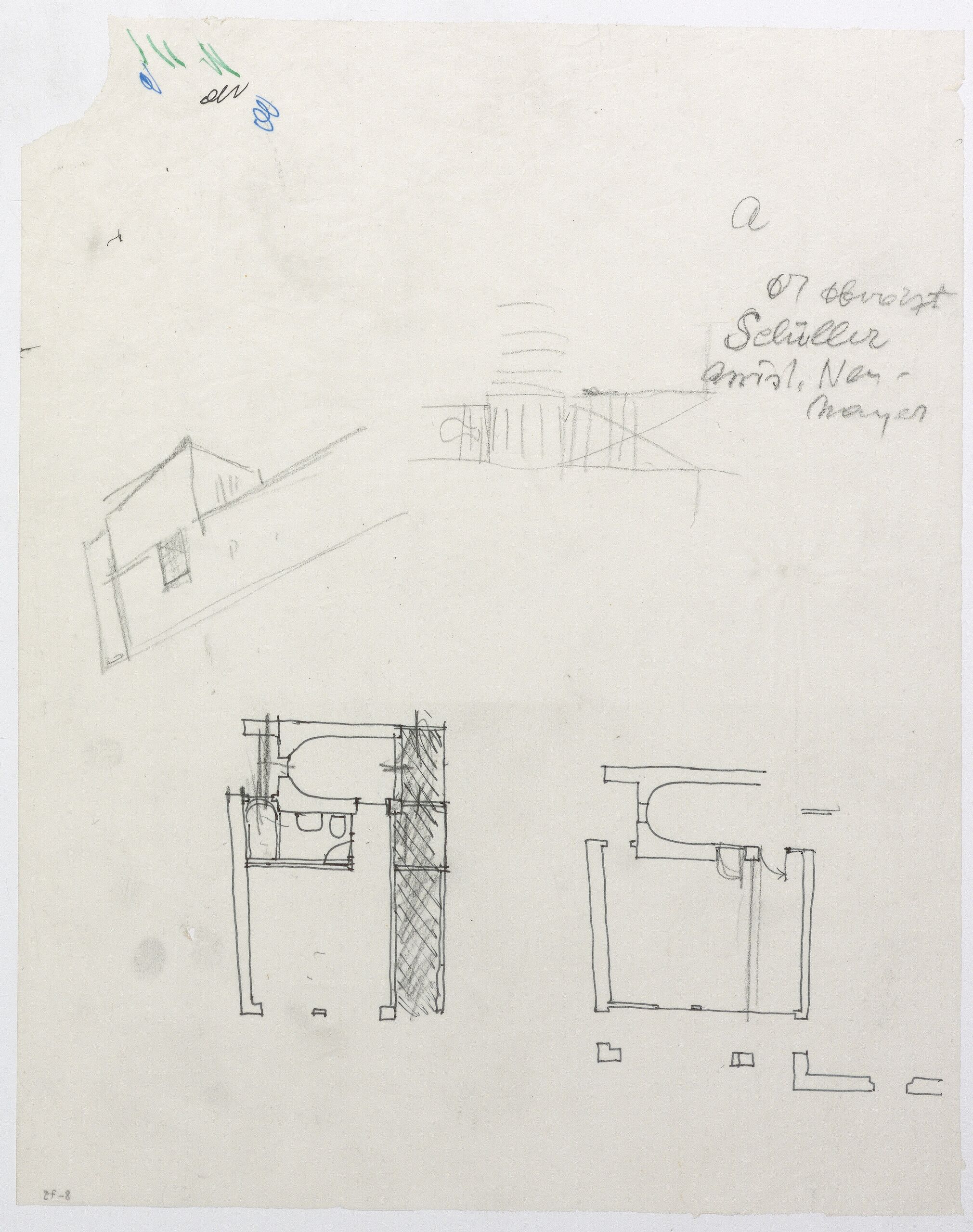 Grundriss, Grundriss von dem nordwestlichen Abschnitt beziehungsweise Turm des Haupthauses, Anna-Lülja Praun, MAK Inv.nr. KI 16475-8-79