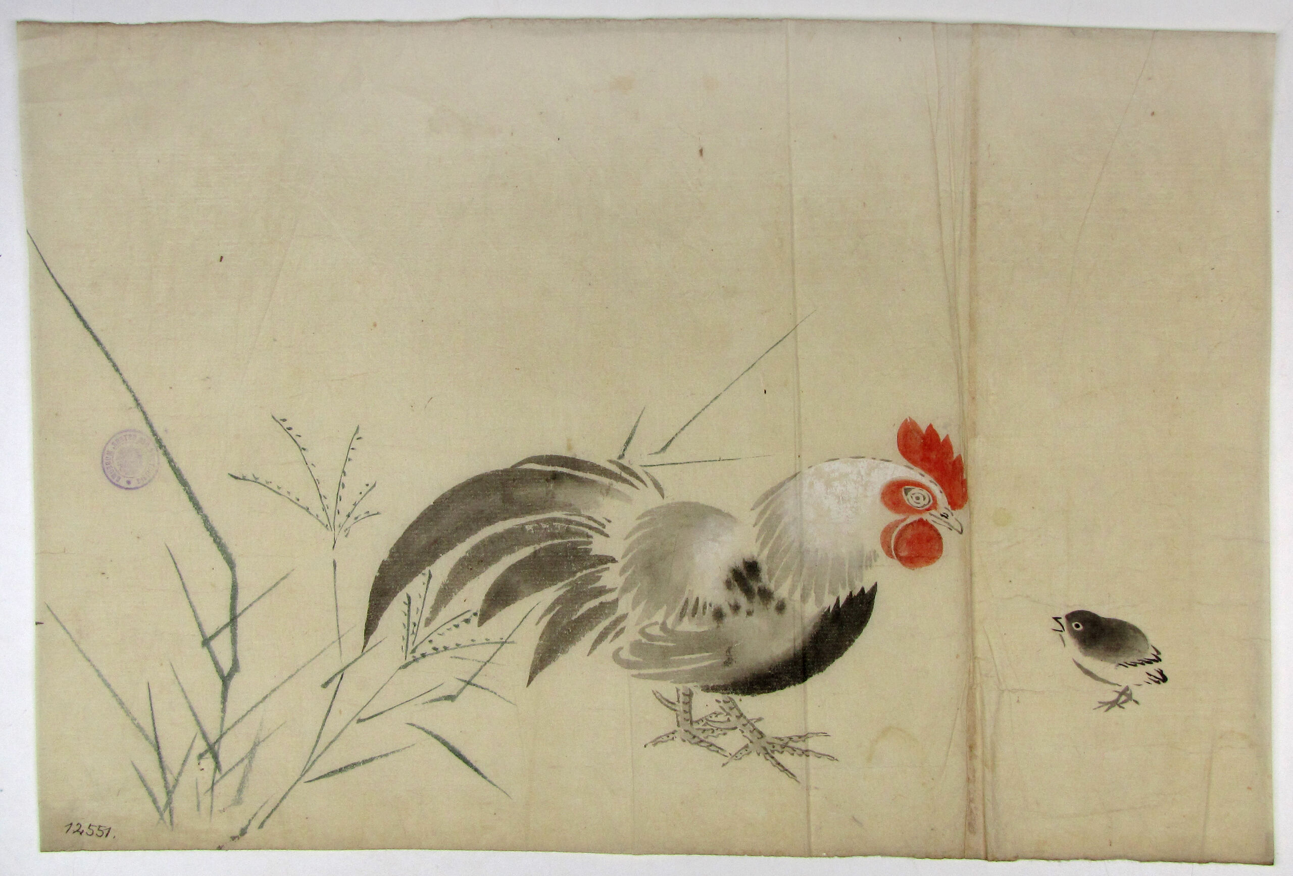 • Tuschezeichnung, Hahn mit Kücken, Anonym, MAK Inv.nr. HM 12551