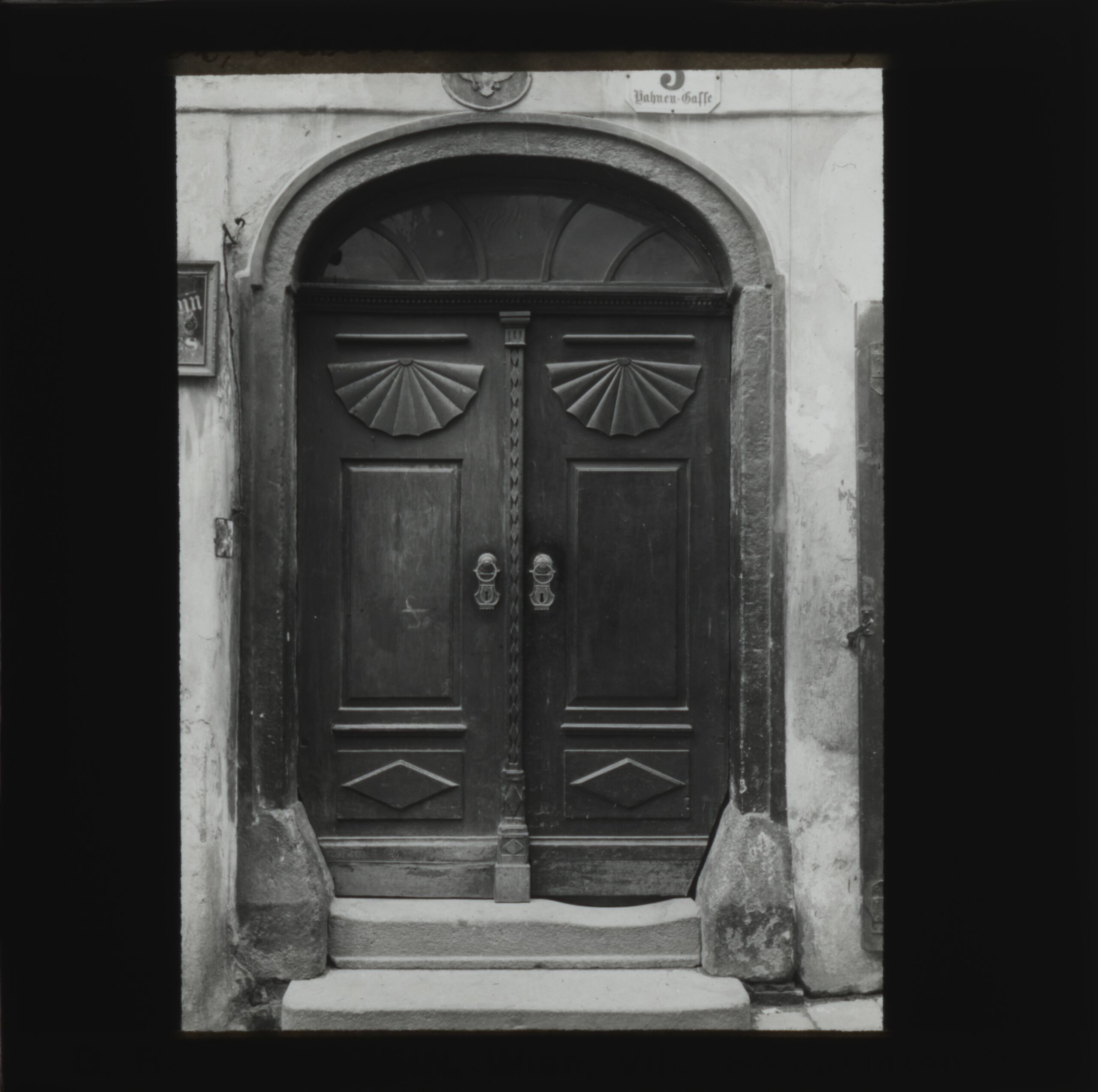 - Text am Objekt: Linz, Haustor in d. Hahnengasse. B. REIFFENSTEIN, Wien, VIII., Bennogasse 24