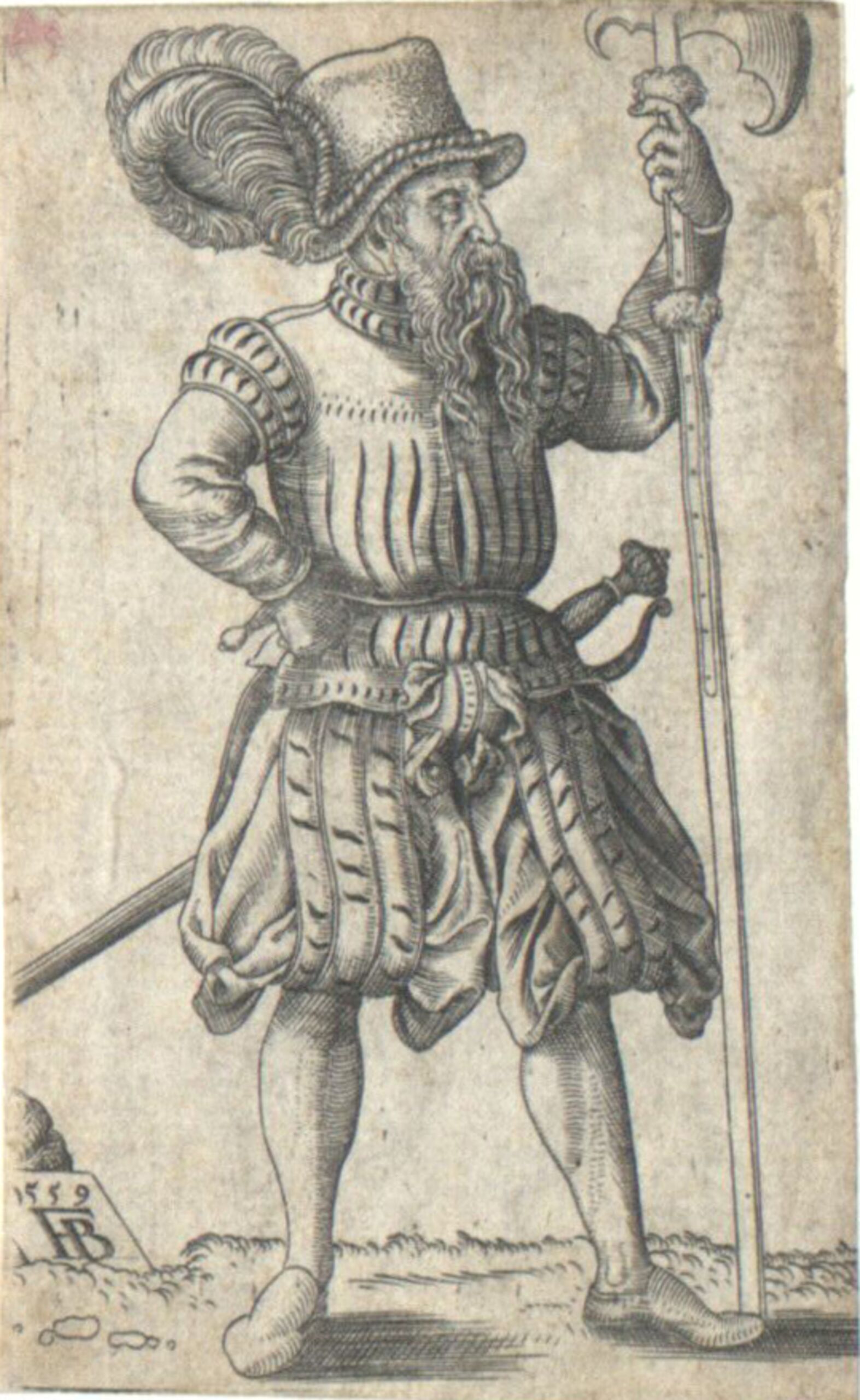 - Hellebardier, Blatt aus einer Folge von seitenverkehrten Kopien nach Bincks Folge der Offiziere und Soldaten (H. 171 - 186) (vom Bearbeiter vergebener Titel)