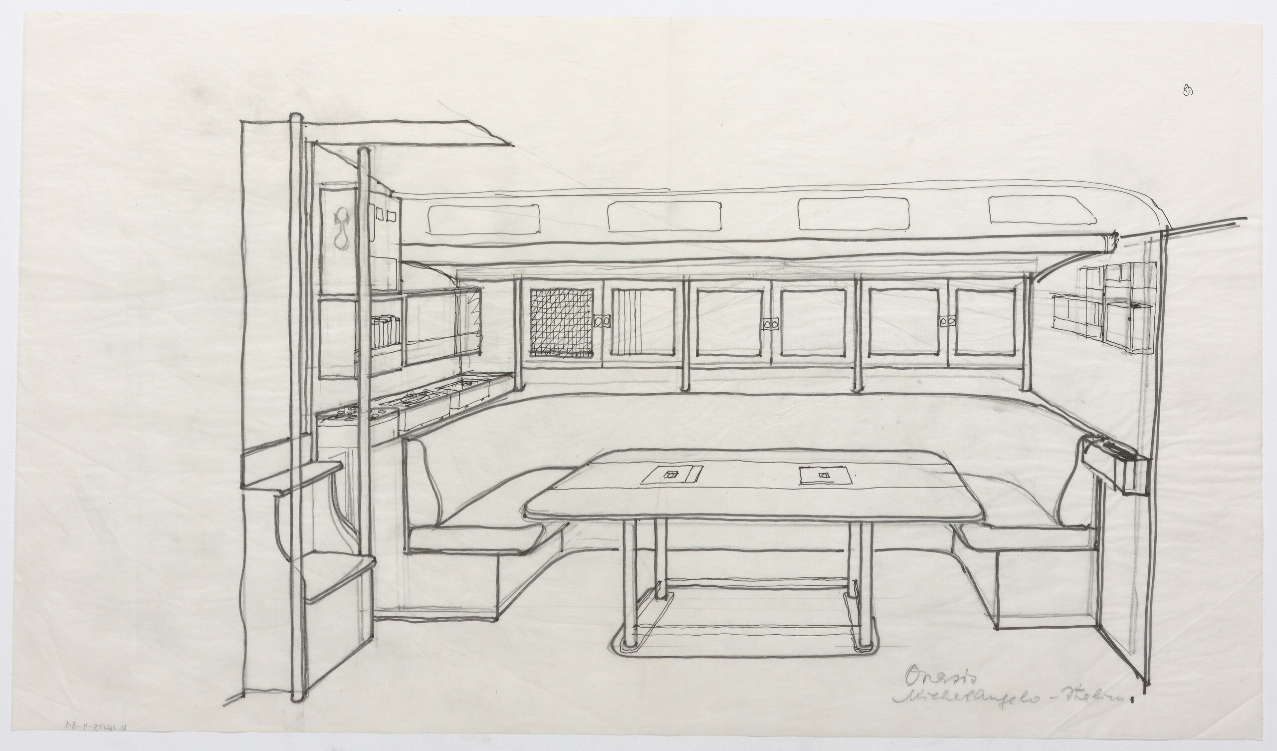 Entwurf, Innenraumansicht einer Kabine, Anna-Lülja Praun, MAK Inv.nr. KI 16475-4-81