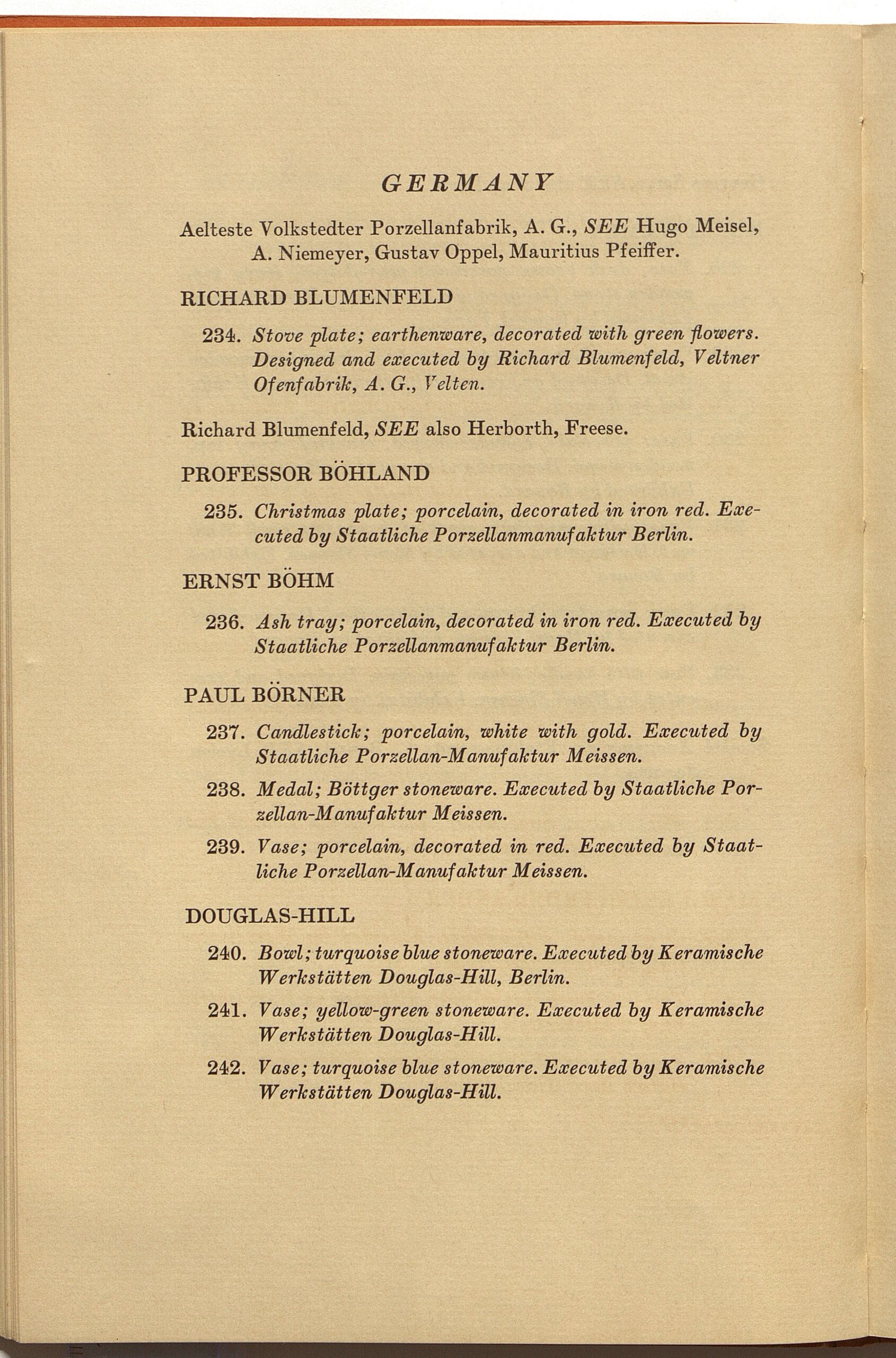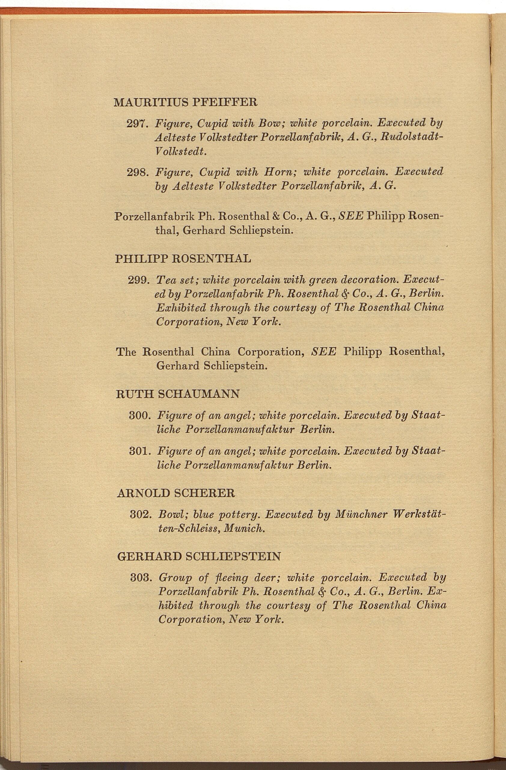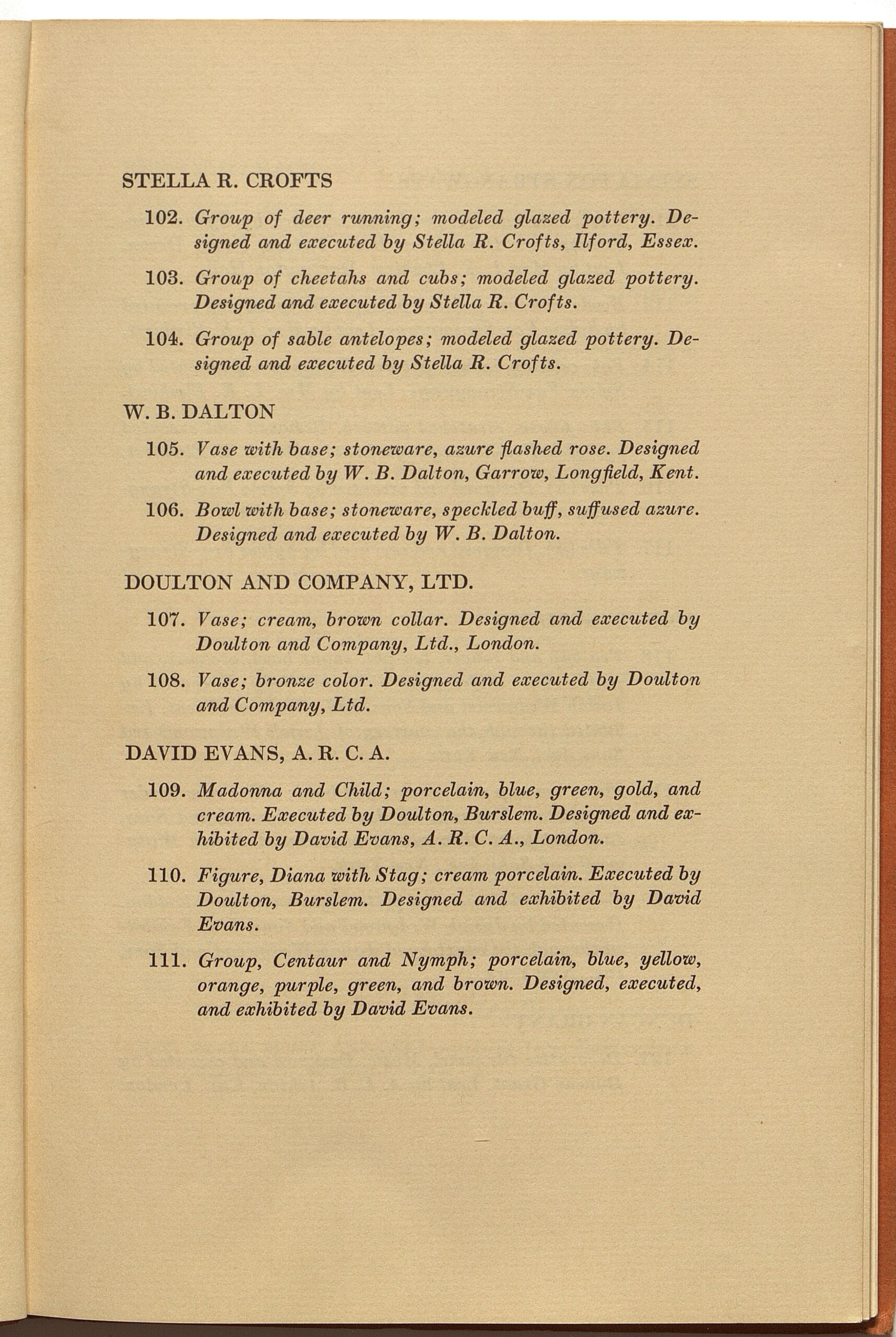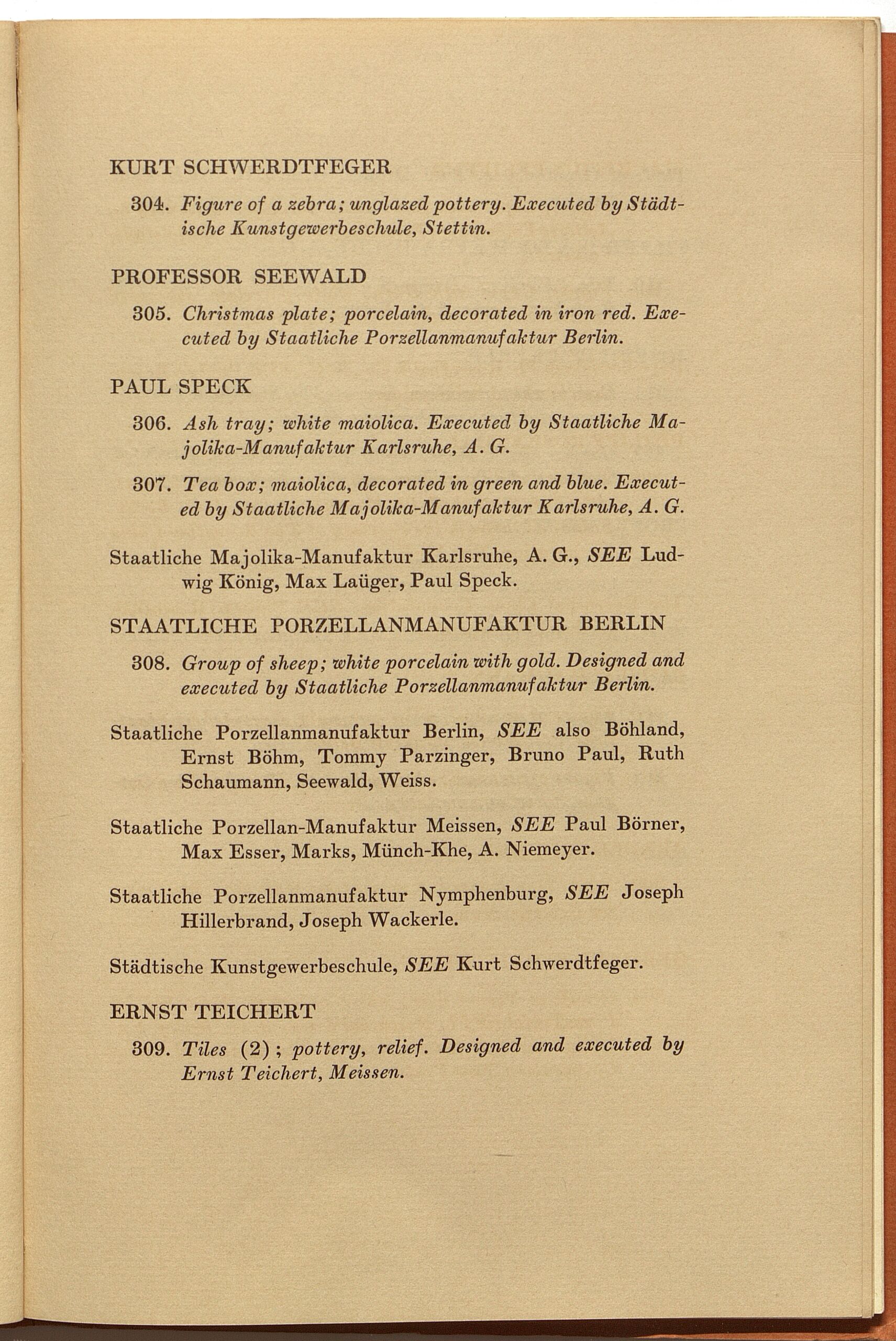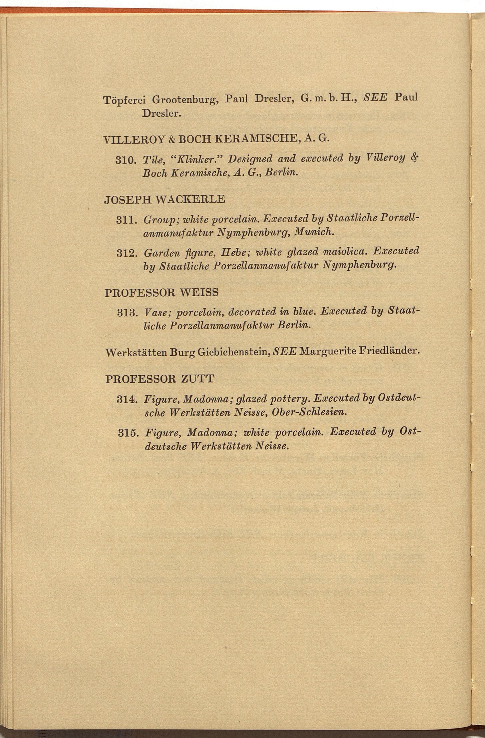 - "International Exhibition of Ceramic Art", The American Federation of Arts, 1928/29 (Originaltitel)