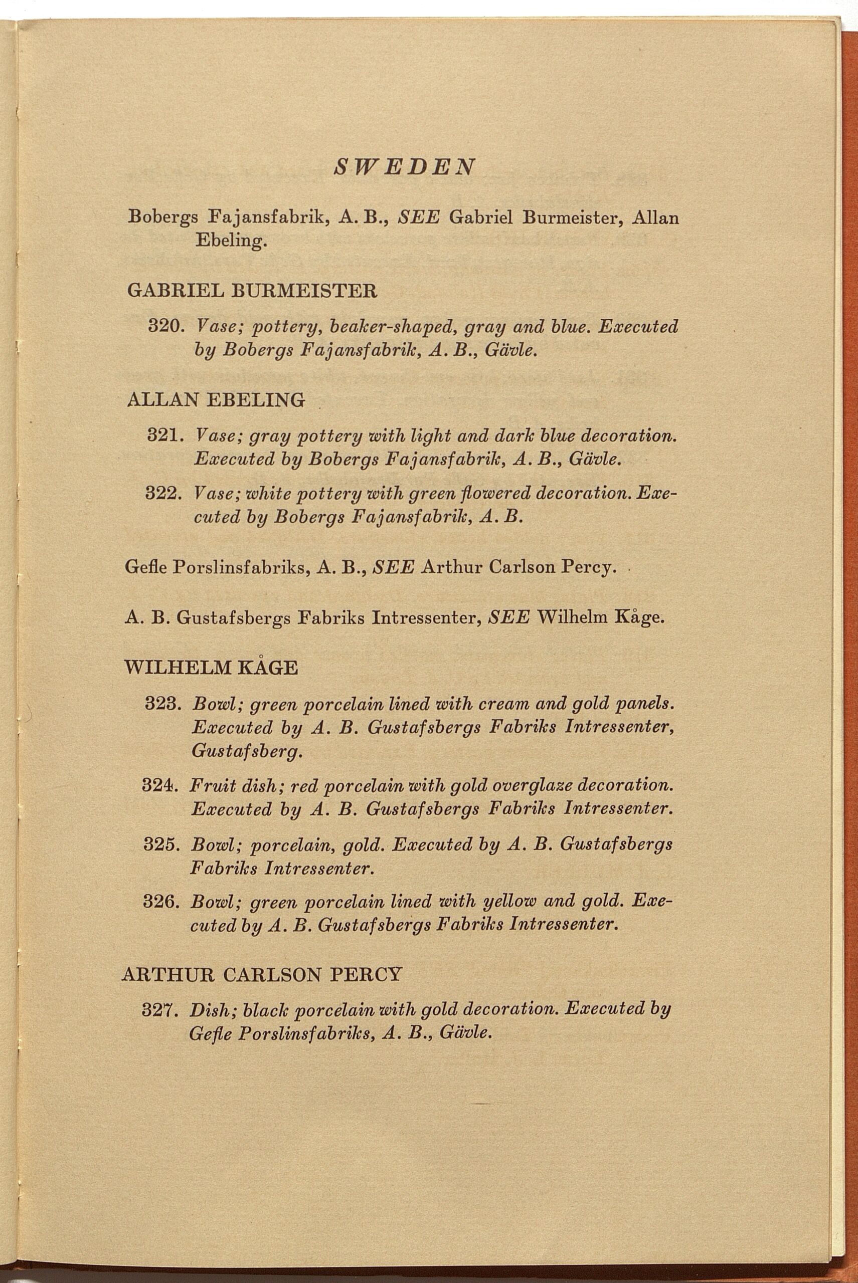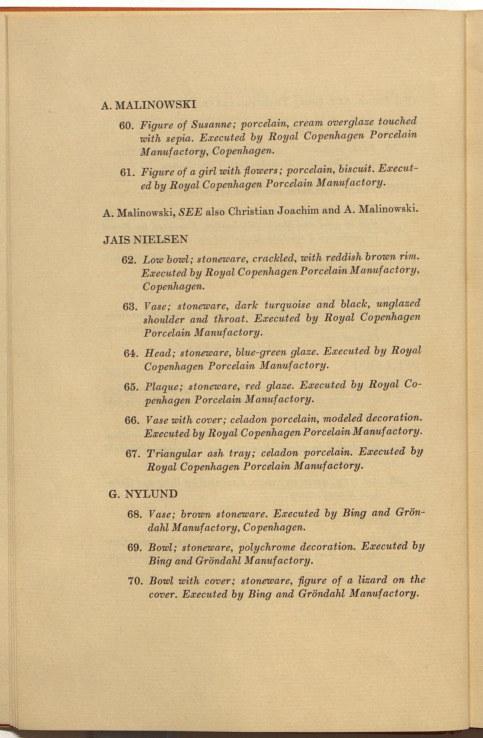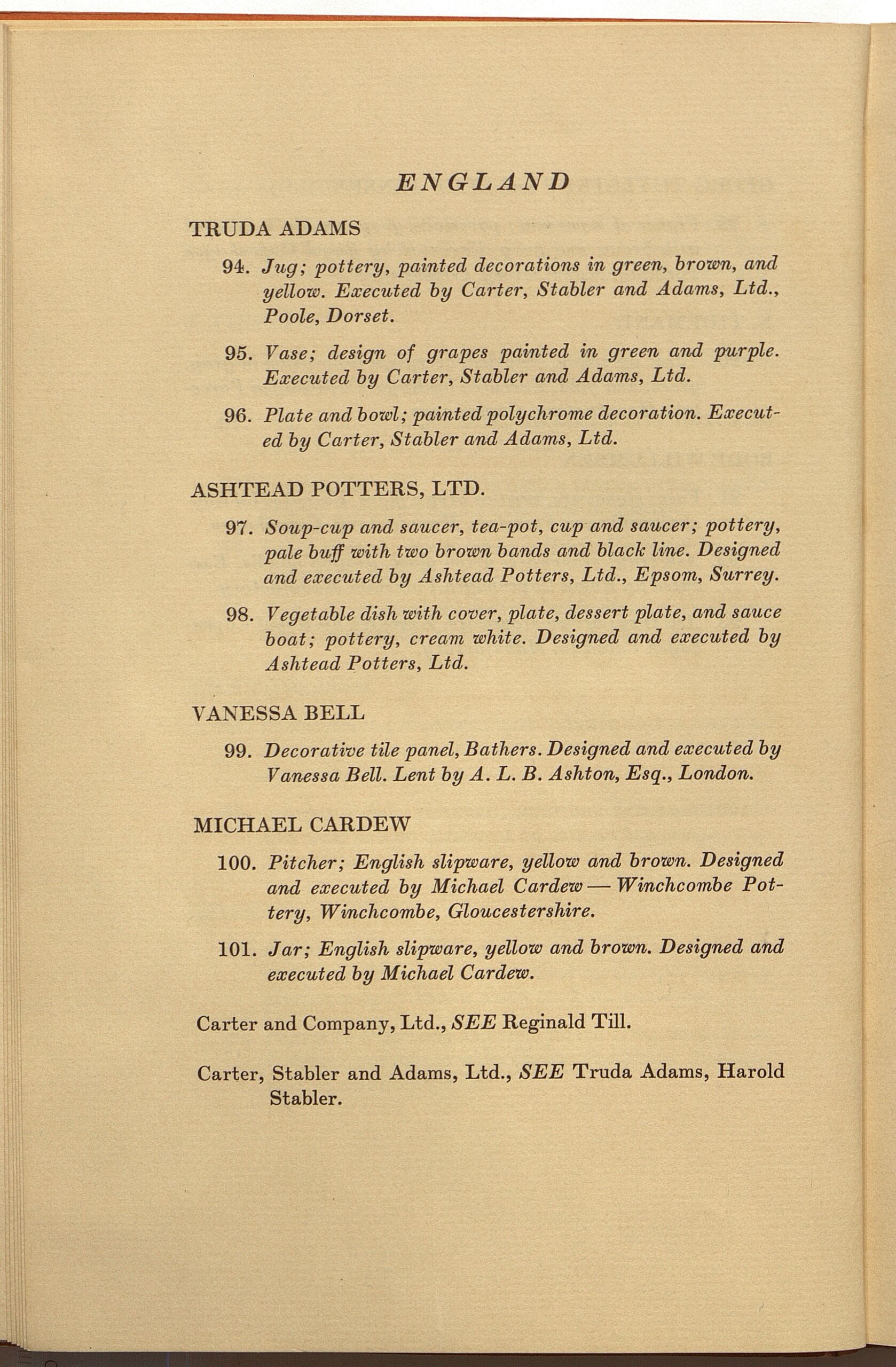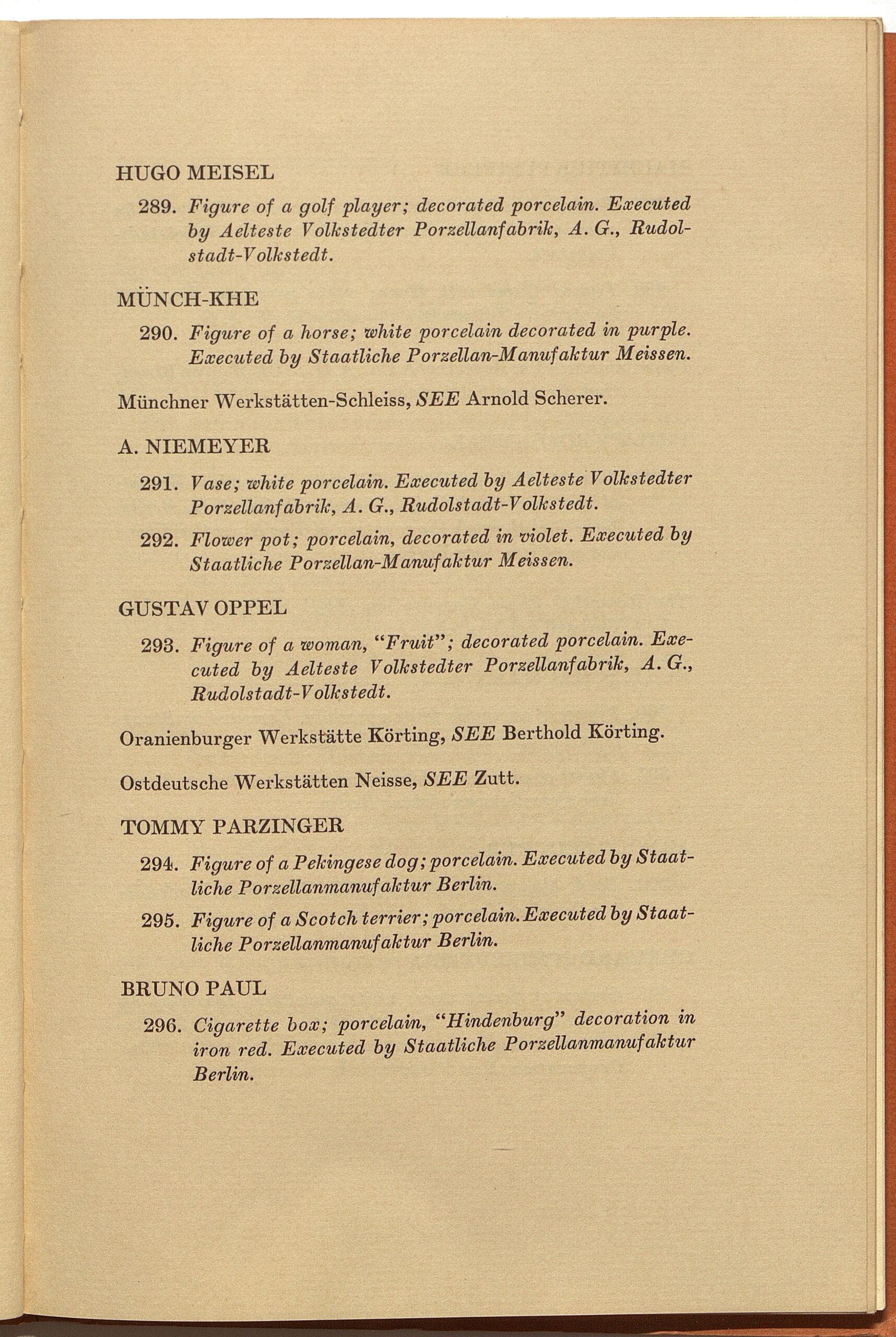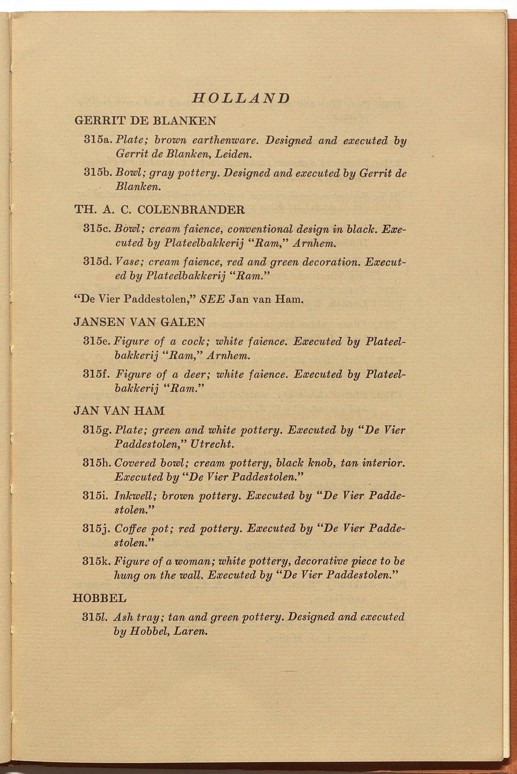 - "International Exhibition of Ceramic Art", The American Federation of Arts, 1928/29 (Originaltitel)