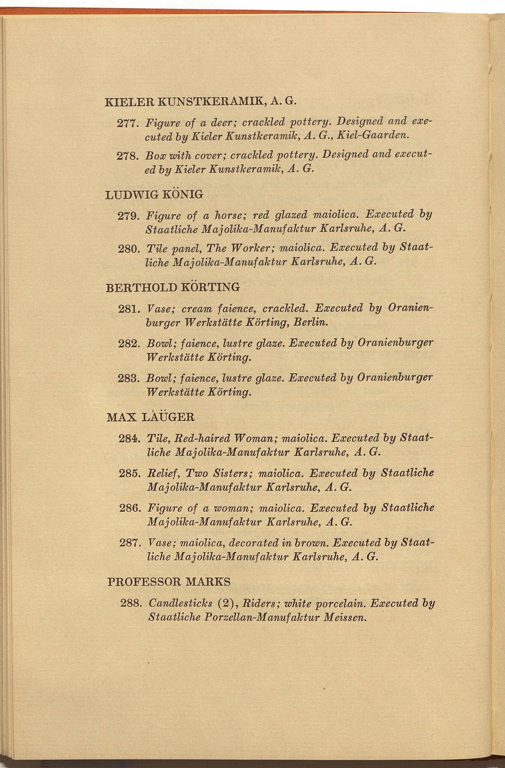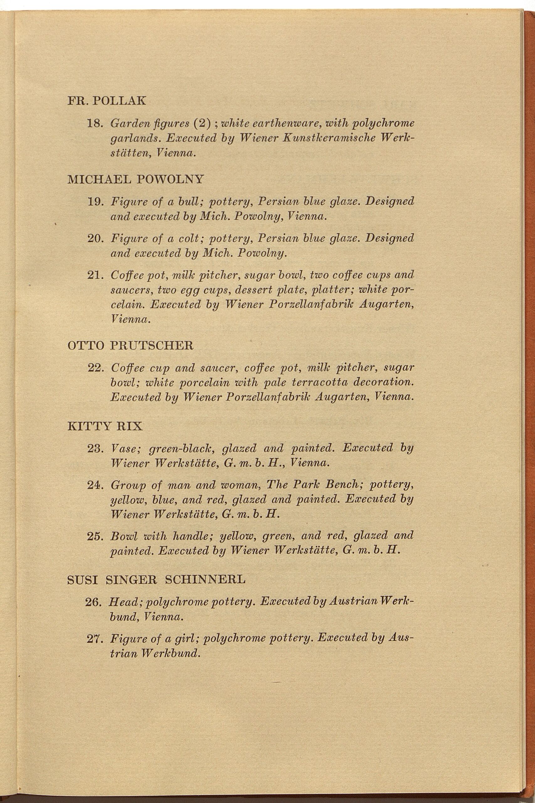 Ausstellungskatalog, "International Exhibition of Ceramic Art", The American Federation of Arts, 1928/29, Ilse Schimmer-Hrdina, MAK Inv.nr. NLDK 55