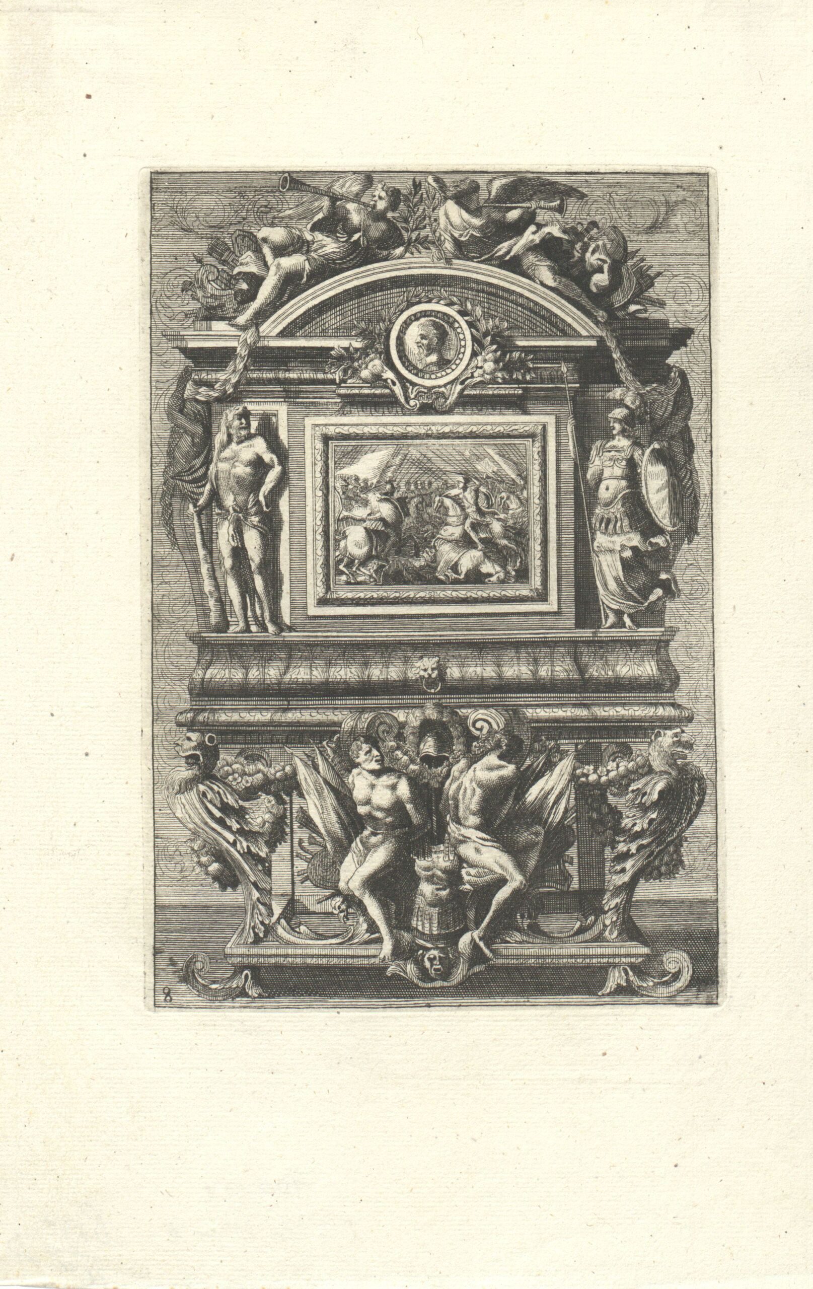 Ornamentstich, Kabinettschrank, Blatt 8 aus der der Folge „Spiegels, Tafels, Geridons en Cabinetten“, Kopien nach Jean Lepautre, Jean Lepautre, MAK Inv.nr. KI 1-658-16