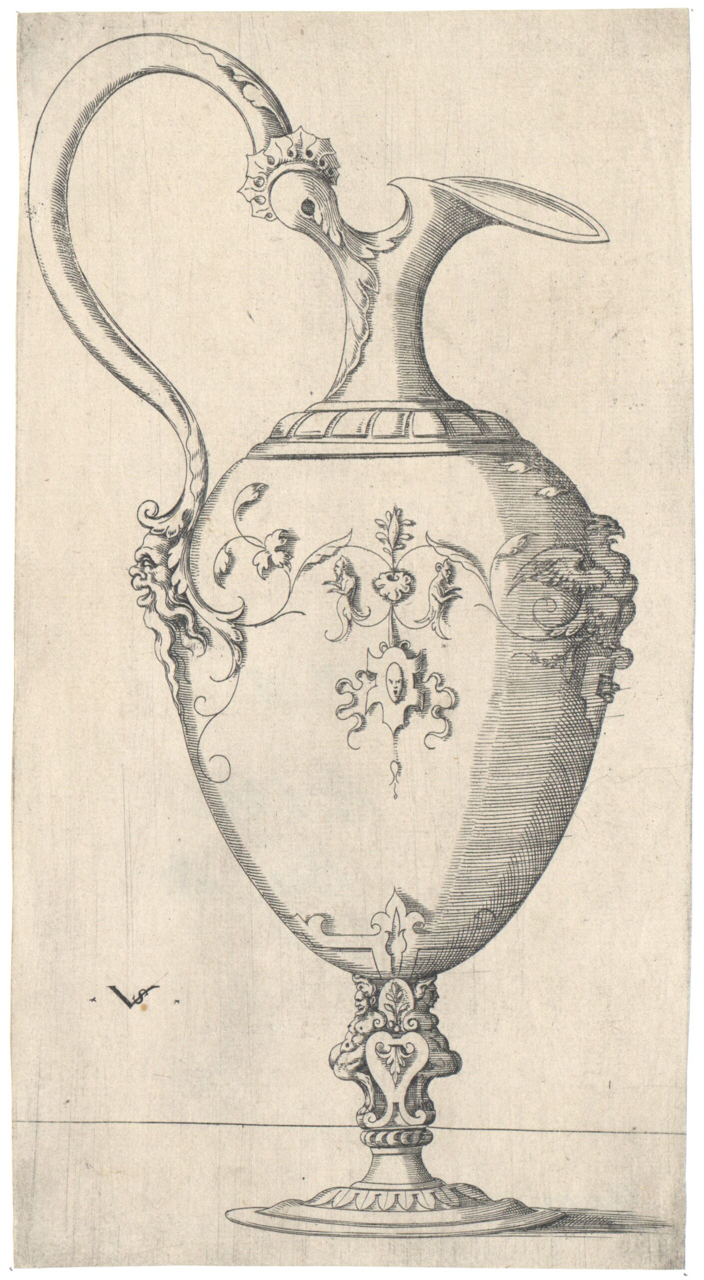 Ornamentstich, Kanne, auf dem Körper links ein Maskaron, rechts ein Adler, Virgil Solis, MAK Inv.nr. KI 7093