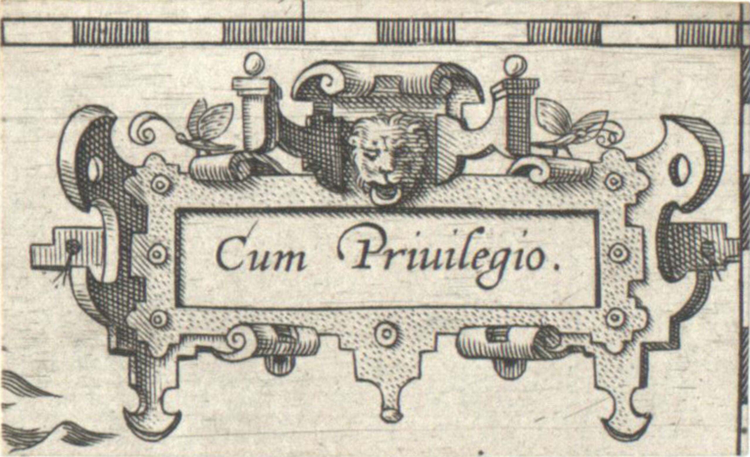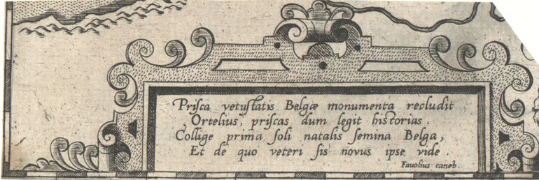 - Kartusche aus der dritten Ausgabe von „Theatrum Orbis Terrarum“ von A. Ortel (Ortelius) ausgeschnitten, die Kartuschen teilweise nach Vredeman de Vries (vom Bearbeiter vergebener Titel)