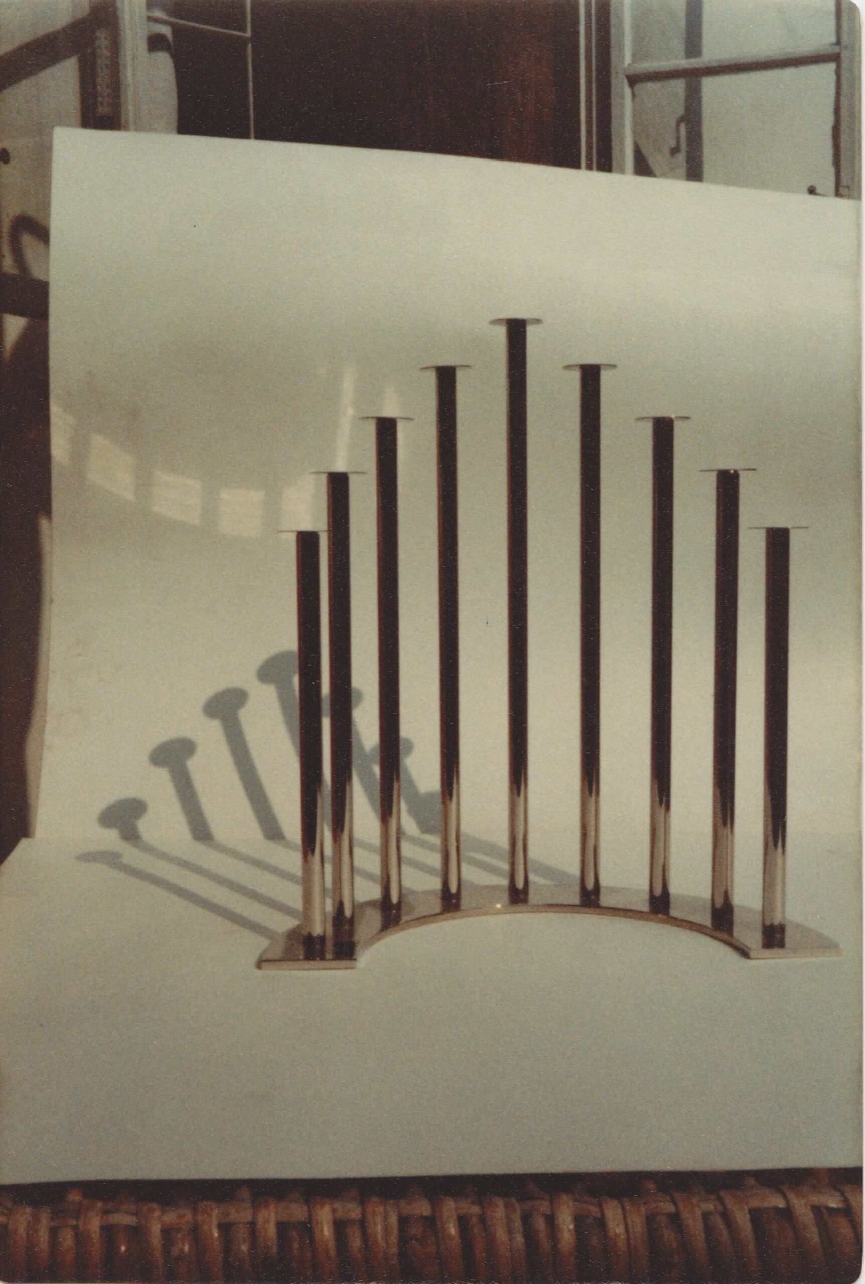 - Kerzenleuchter halbrund, neunarmig, Chanukkaleuchter (vom Bearbeiter vergebener Titel)