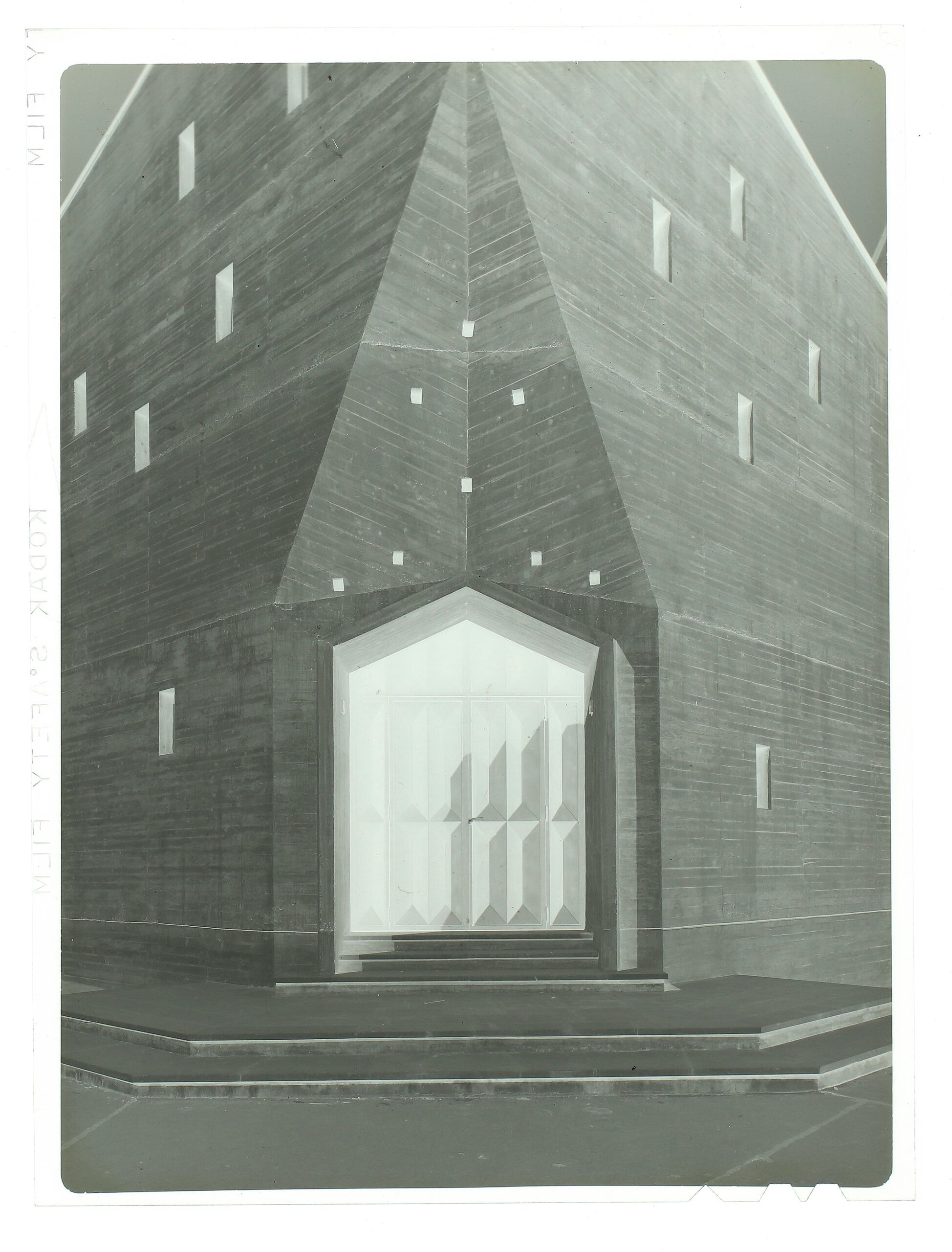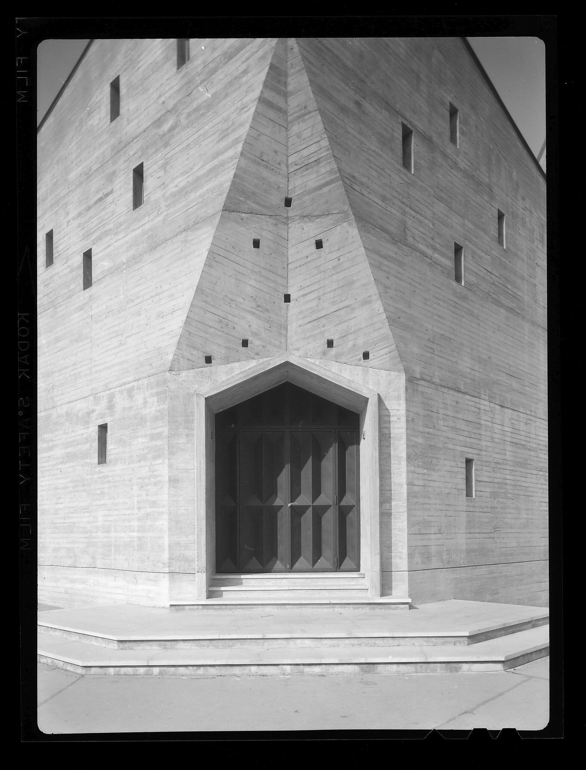 - Kirchenportal, Kirche "Zum Guten Hirten", Bossigasse 68, 1130 Wien (Architekten: Ceno und Herta Kosak) (vom Bearbeiter vergebener Titel)