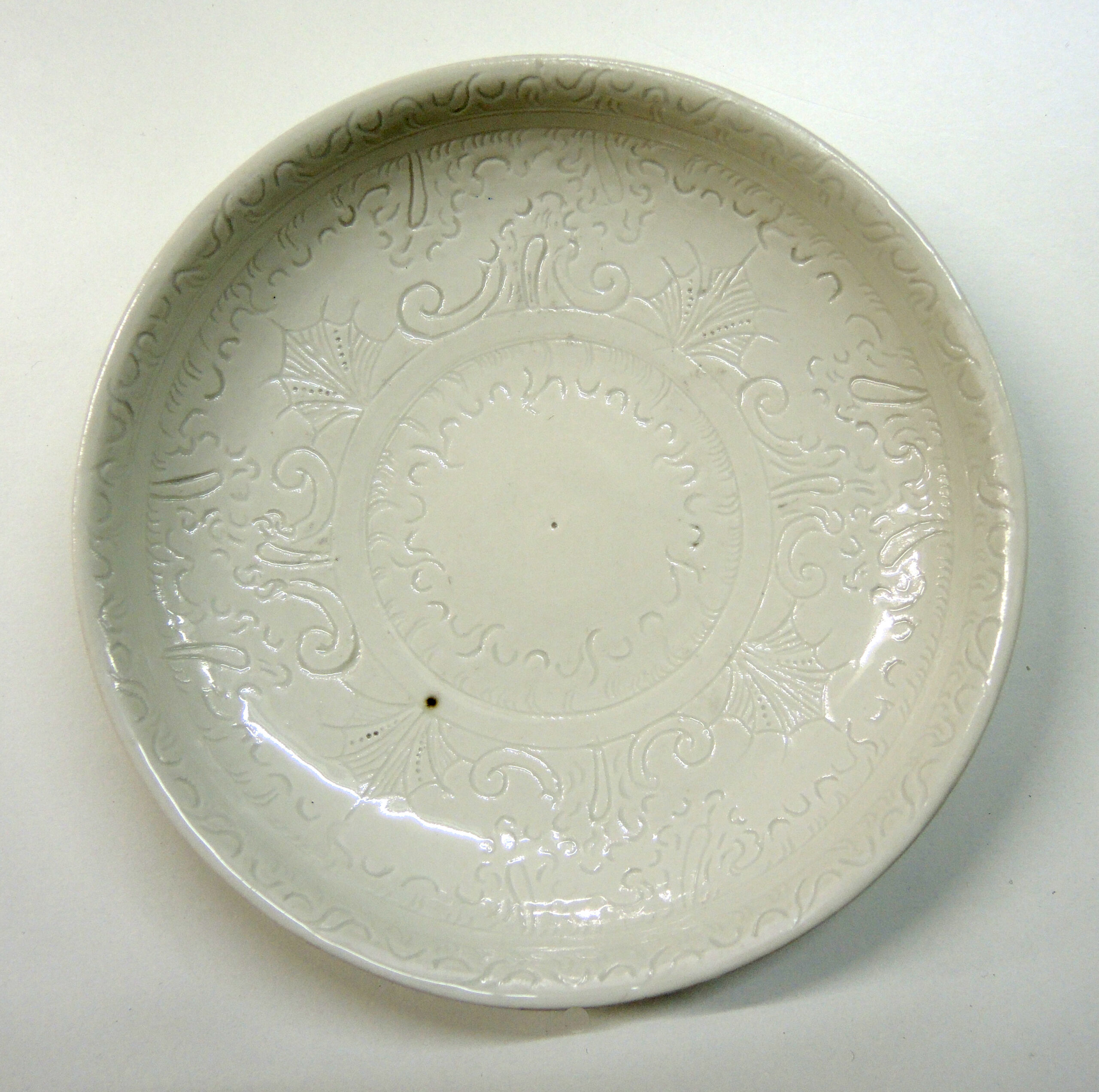 Porzellan mit eingeritztem Dekor unter transparenter Glasur