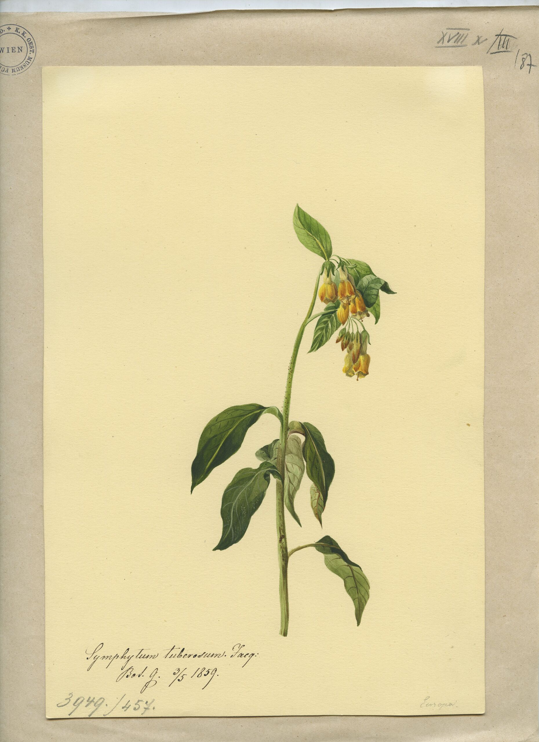- Text am Objekt: Symphytum tuberosum Jacq: / Bot. G. 3/5 1859 [Feder in Braun]