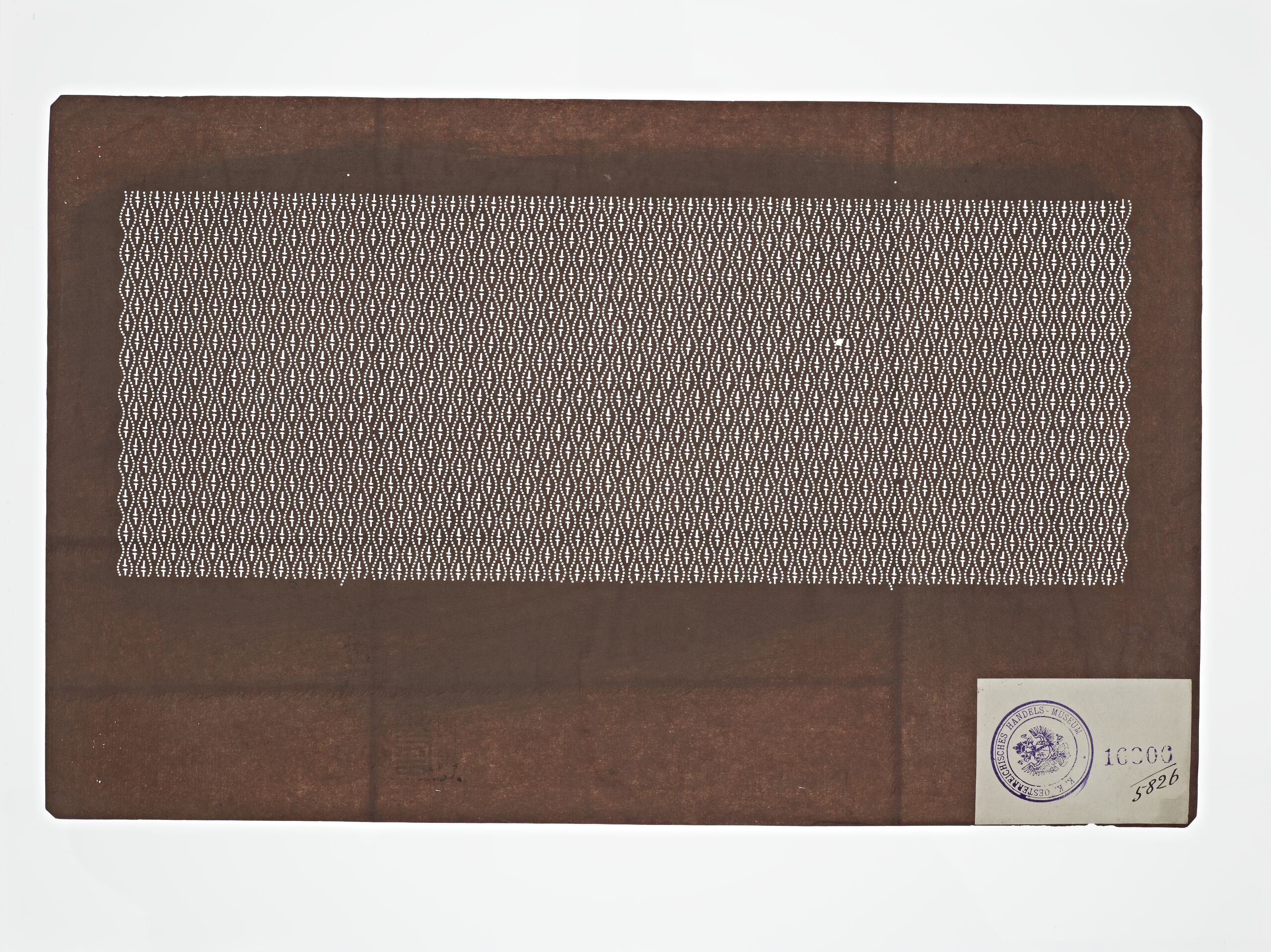 • Färbeschablone (Katagami 型紙), Komon 小紋, Flächenmuster (waritsuke monyō 割付文様), Pflanzenmuster (shokubutsu monyō 植物文様): aufsteigender Dampf (tatewaku 立涌) und Bambusknoten, Anonym, MAK Inv.nr. OR 3925-5826