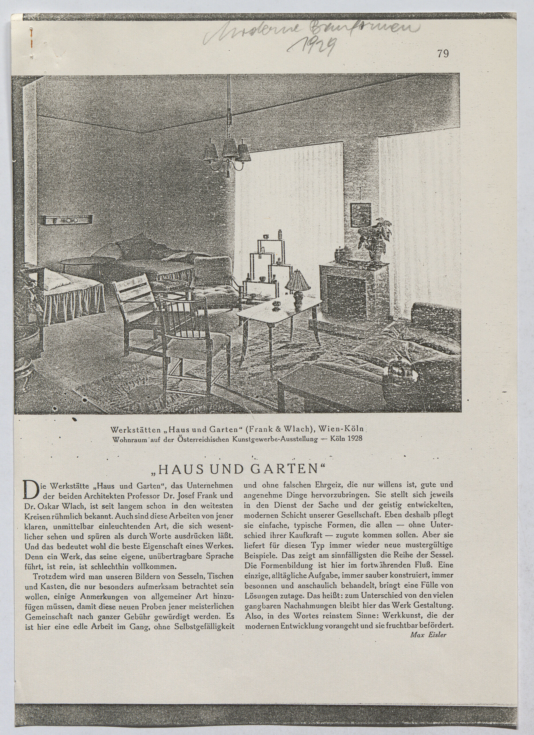 Fotokopie, Kopie der Abbildungen zu diversen Möbeln von Haus & Garten (Josef Frank, Oskar Wlach), Josef Frank, MAK Inv.nr. KI 23497-580-114