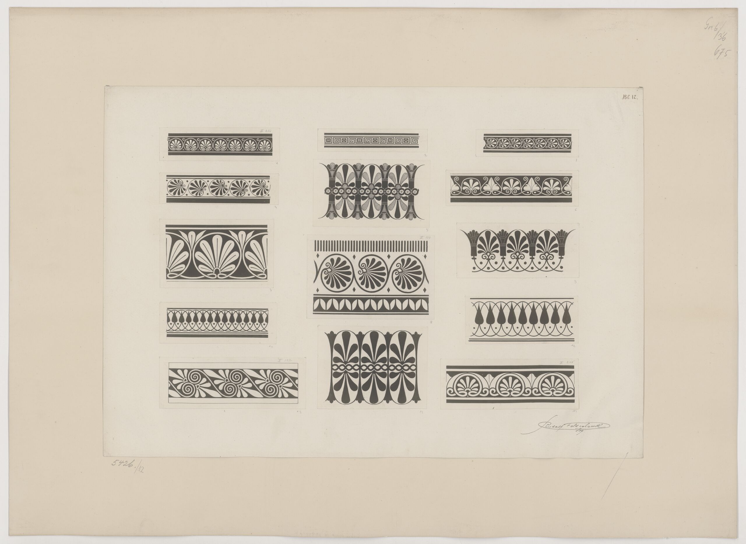 Stilkopie, Kopie einer Bordüre mit einem geormetrischen Muster auf einem antiken Tongefäß von Rudolf Feldscharek, Rudolf Feldscharek, MAK Inv.nr. KI 5426-12-2