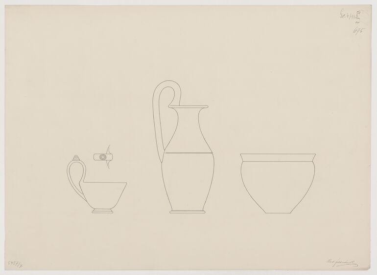 - Kopie einer Bordüre mit stilisierten Blättern und Spiralen auf einem antiken Tongefäß von Rudolf Feldscharek (vom Bearbeiter vergebener Titel)