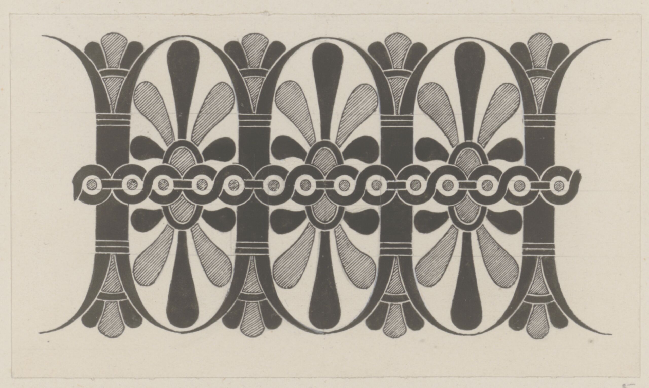 Stilkopie, Kopie einer Bordüre mit stilisierten zweifärbigen Blattmotiven auf einem antiken Tongefäß von Rudolf Feldscharek, Rudolf Feldscharek, MAK Inv.nr. KI 5426-12-5