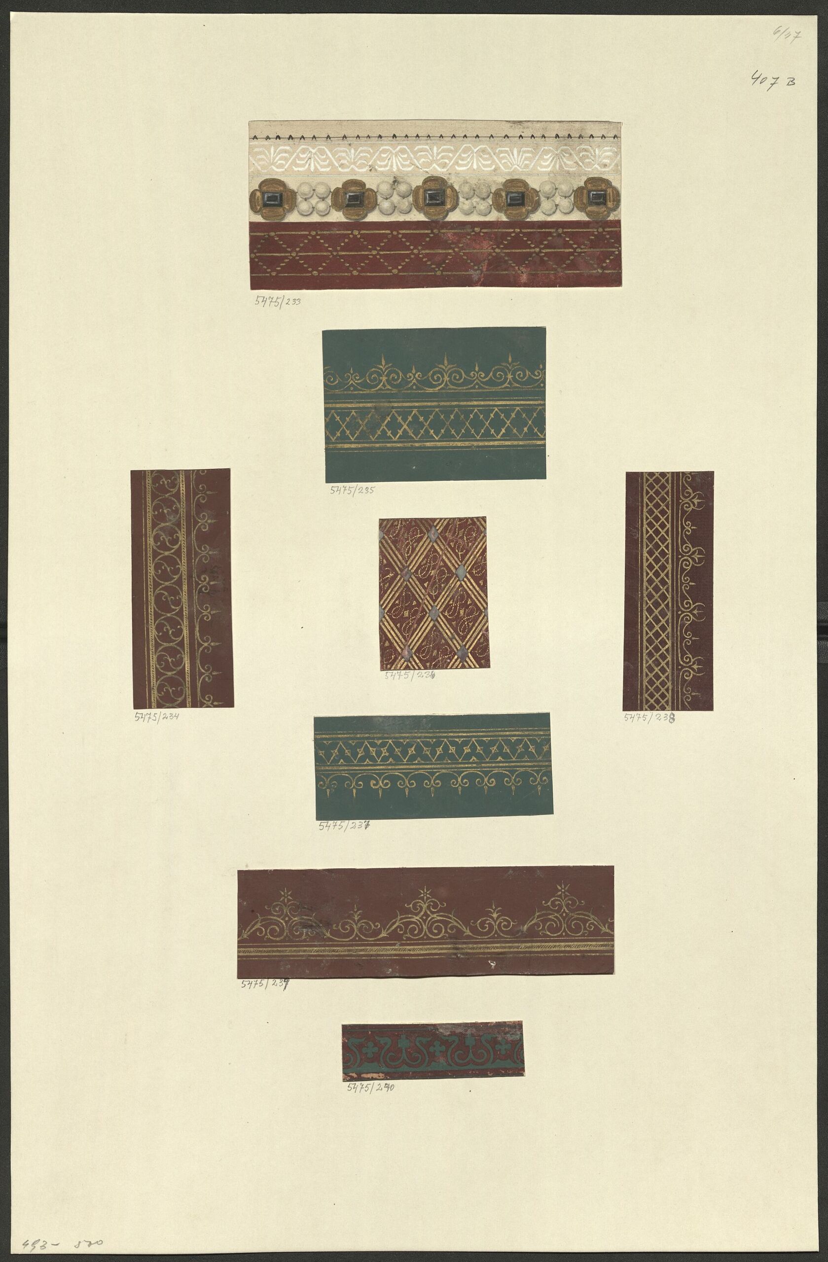 Stilkopie, Kopie einer grünen Borte mit goldfarbenem Muster von Friedrich Fischbach, Friedrich Fischbach, MAK Inv.nr. KI 5475-237