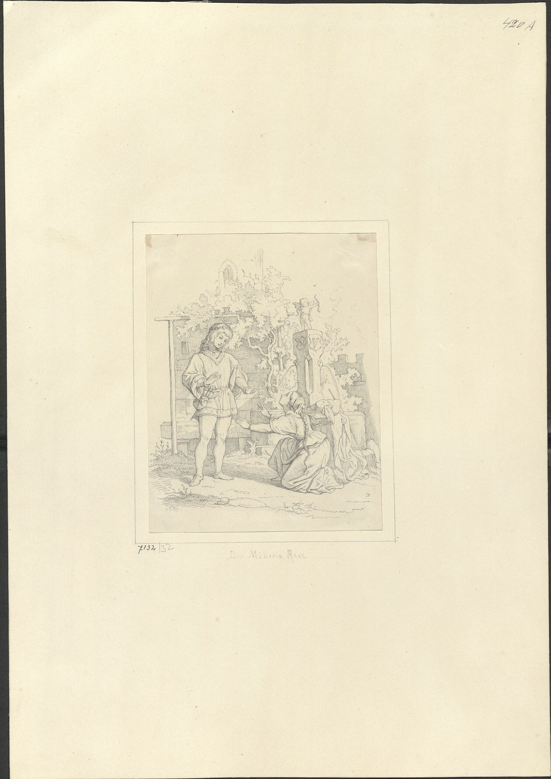 - Text am Objekt (mittig unten) : "7132/32 / Der Müllerin Reue."