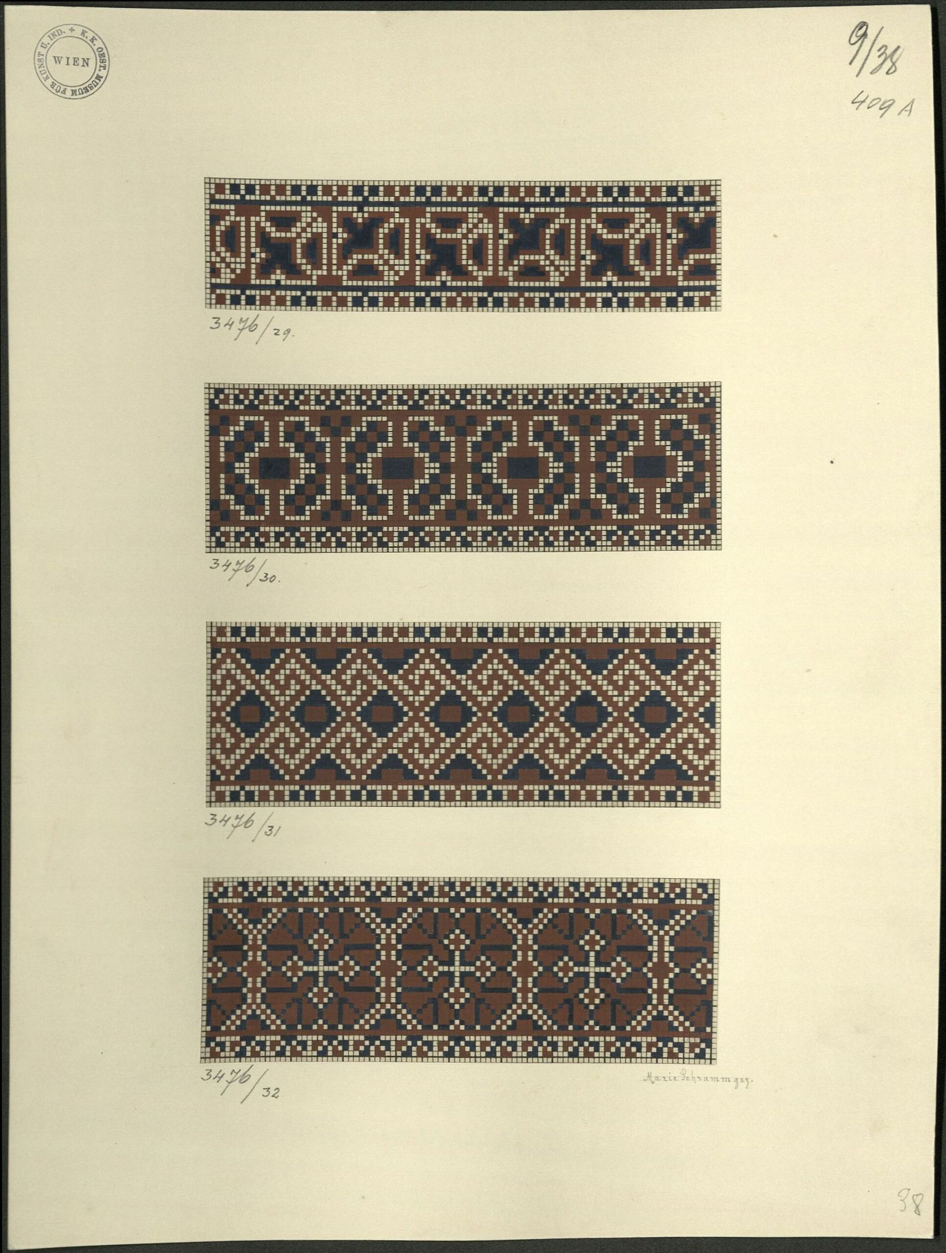 Stilkopie, Kopie eines dreifärbigen symmetrischen Stickmusters galizischer Herkunft von Schramm, Marie Schramm, MAK Inv.nr. KI 3476-30