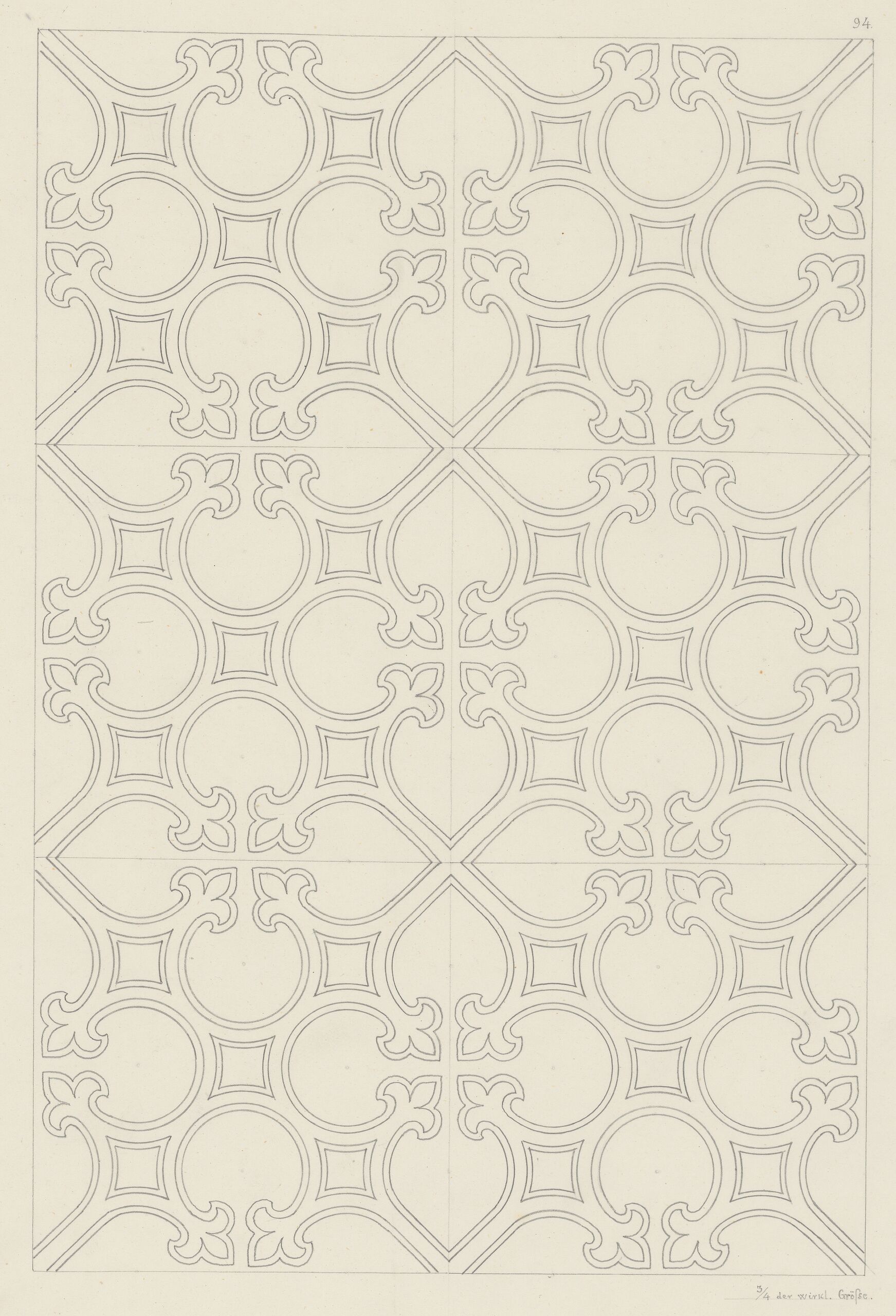 - Kopie eines Fliesenmusters mit stilisertem Lilienornament und konkaven Quadraten aus einem spätmittelalterlichen Privathaus zu Ulm, Esslingen oder Schwäbisch Hall von Eduard Herdtle (vom Bearbeiter vergebener Titel)