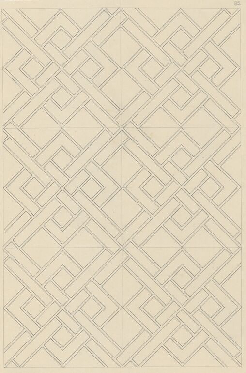 - Kopie eines Fliesenmusters mit stilisiertem Blüten- und Blattornament in Doppelkreis sowie einem Sternmotiv aus dem Staufer-Palas der Kaiserpfalz Bad Wimpfen von Eduard Herdtle (vom Bearbeiter vergebener Titel)