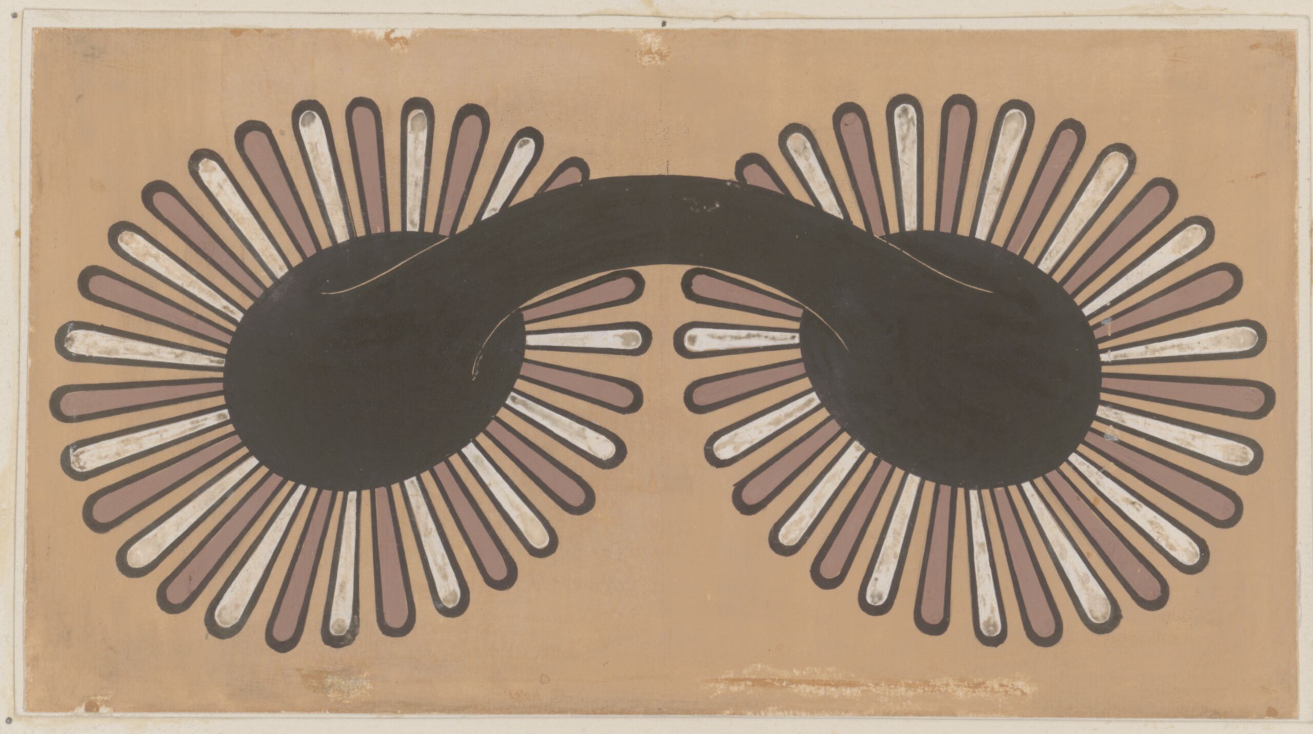Stilkopie, Kopie eines Ornaments aus rotweißen Lamellen zur Verzierung um einen Henkel auf einem antiken Tongefäß von Rudolf Feldscharek, Rudolf Feldscharek, MAK Inv.nr. KI 5426-6-5