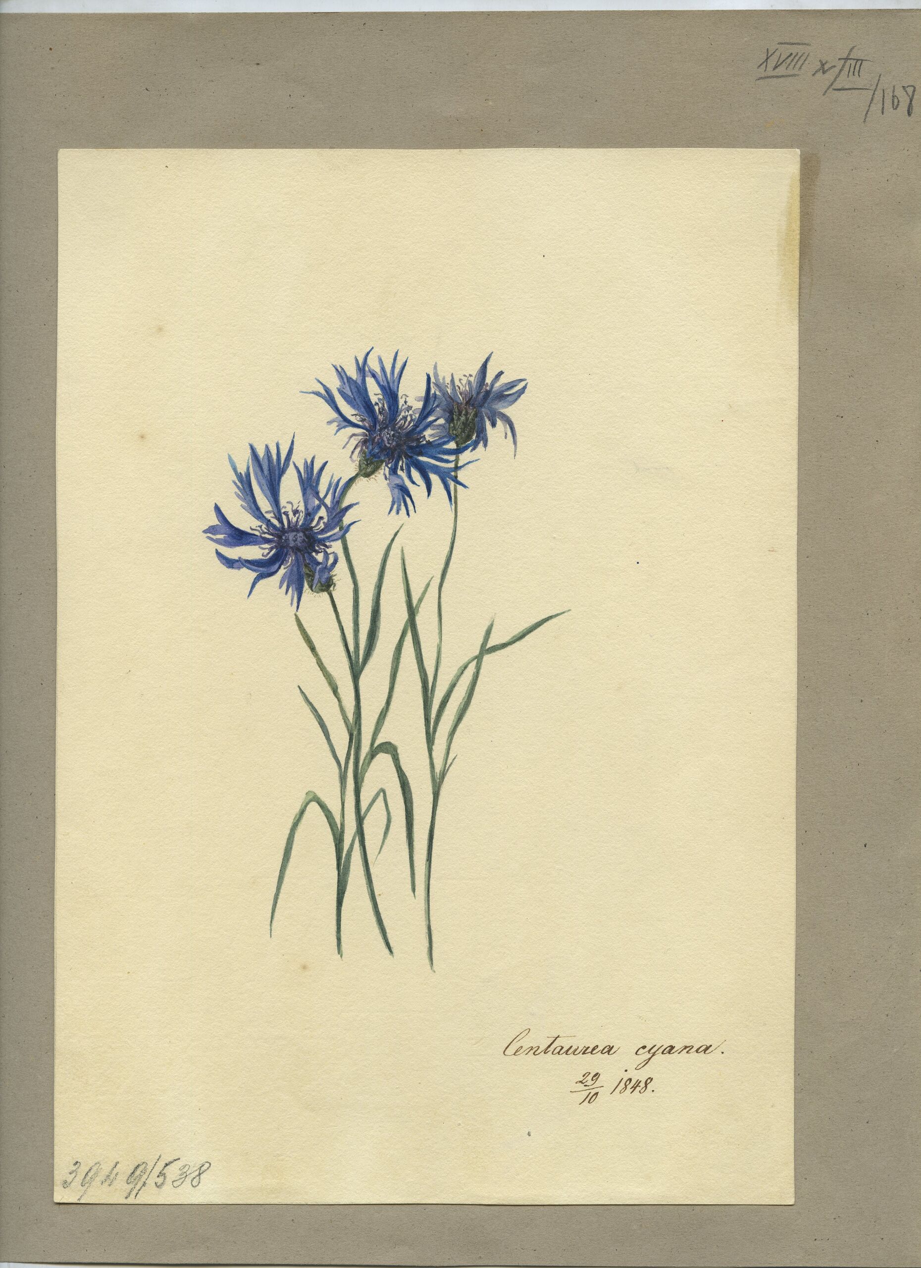 - Text am Objekt: Centaurea cyana / 29/10 1848 [Feder in Braun]