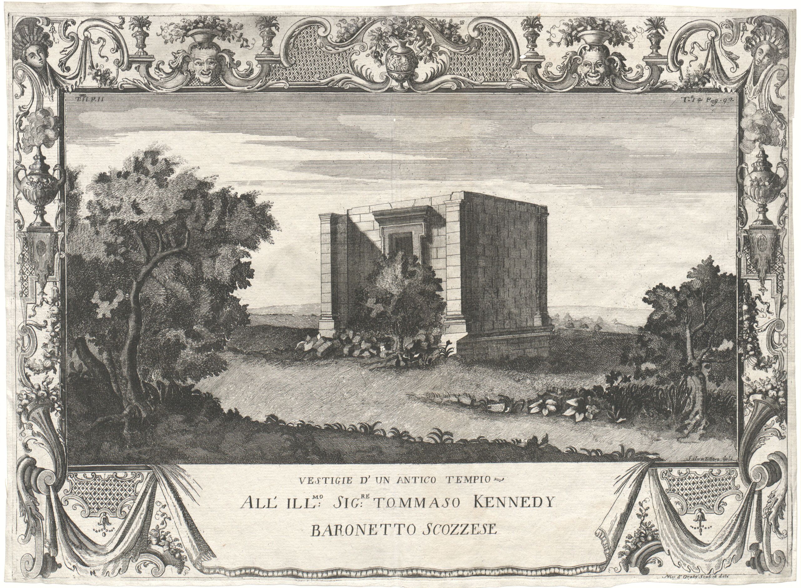 - Text am Objekt: VESTIGIE D’UN ANTICO TEMPIO/ ALL’ ILLmo: SIGre: TOMMASO KENNEDY/ BARONETTO SCOZZESE