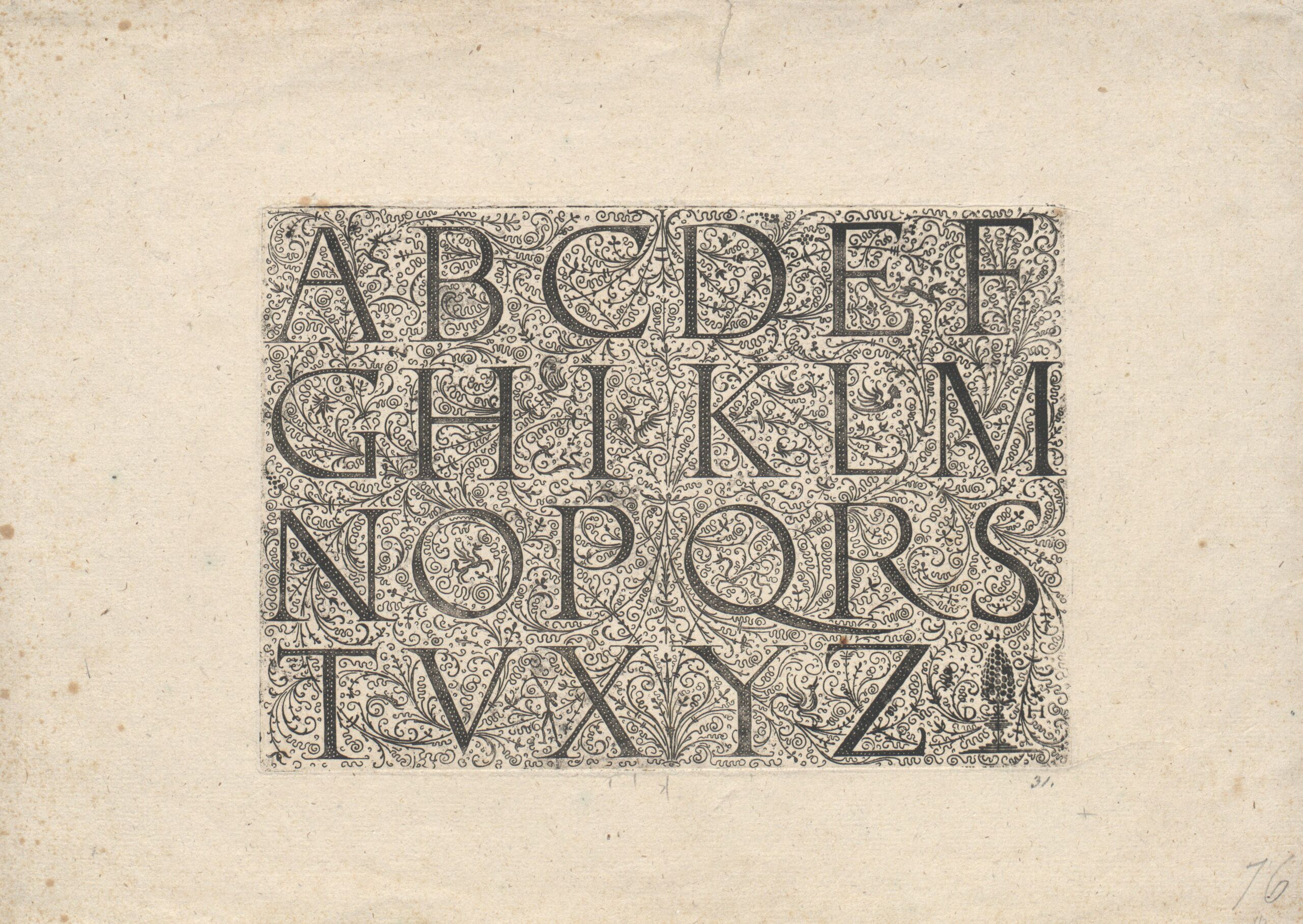 Alphabet, Lateinisches Majuskel- Alphabet auf Schweifarabeskengrund, Daniel Hopfer, MAK Inv.nr. KI 1-1053