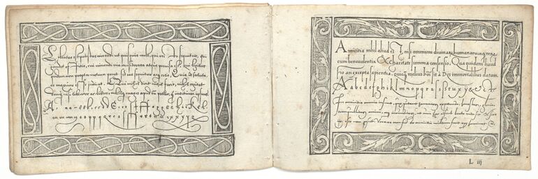 - Schriftmusterblatt, Blatt L II aus der Folge „Libellus Valde Doctus, elegans, & utilis, multa & varia scribendarum literarum genera completens.”, vgl. Drugulin S. 72 (D. 1060)