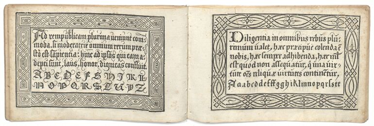 - Schriftmusterblatt, Blatt I II aus der Folge „Libellus Valde Doctus, elegans, & utilis, multa & varia scribendarum literarum genera completens.”, vgl. Drugulin S. 72 (D. 1060)