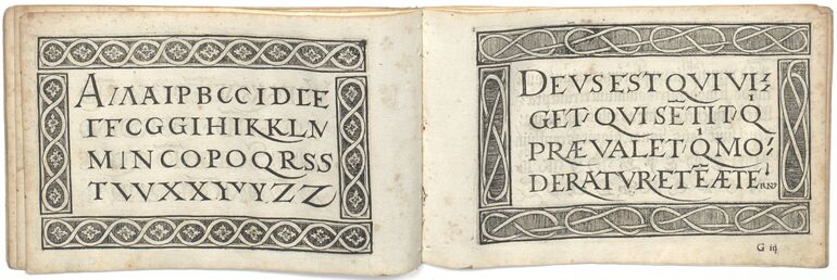 - Schriftmusterblatt, Blatt G II aus der Folge „Libellus Valde Doctus, elegans, & utilis, multa & varia scribendarum literarum genera completens.”, vgl. Drugulin S. 72 (D. 1060)