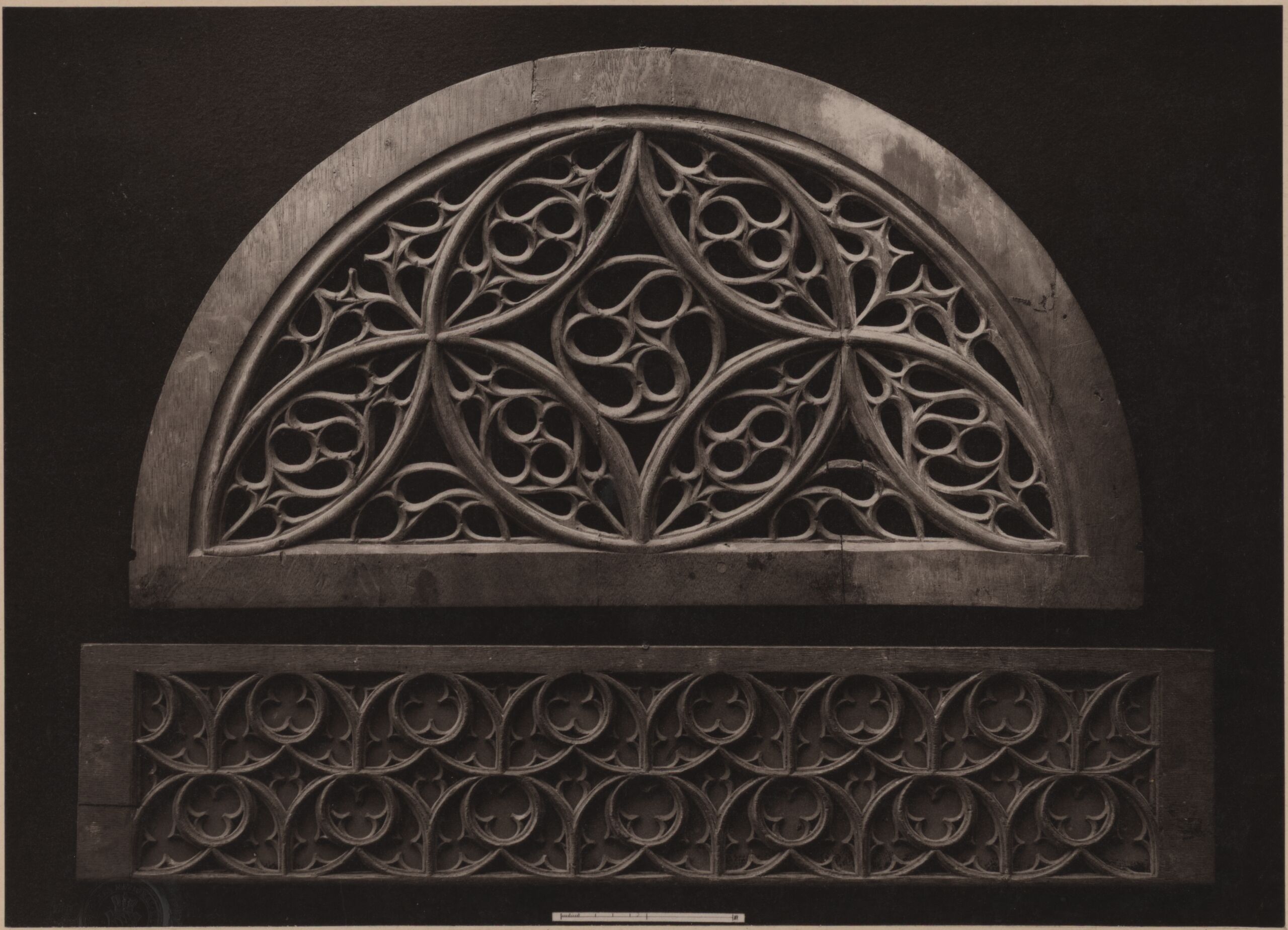 - Lichtdruck von geschnitzten Maßwerkornamenten des 15. Jahrhunderts (vom Bearbeiter vergebener Titel)