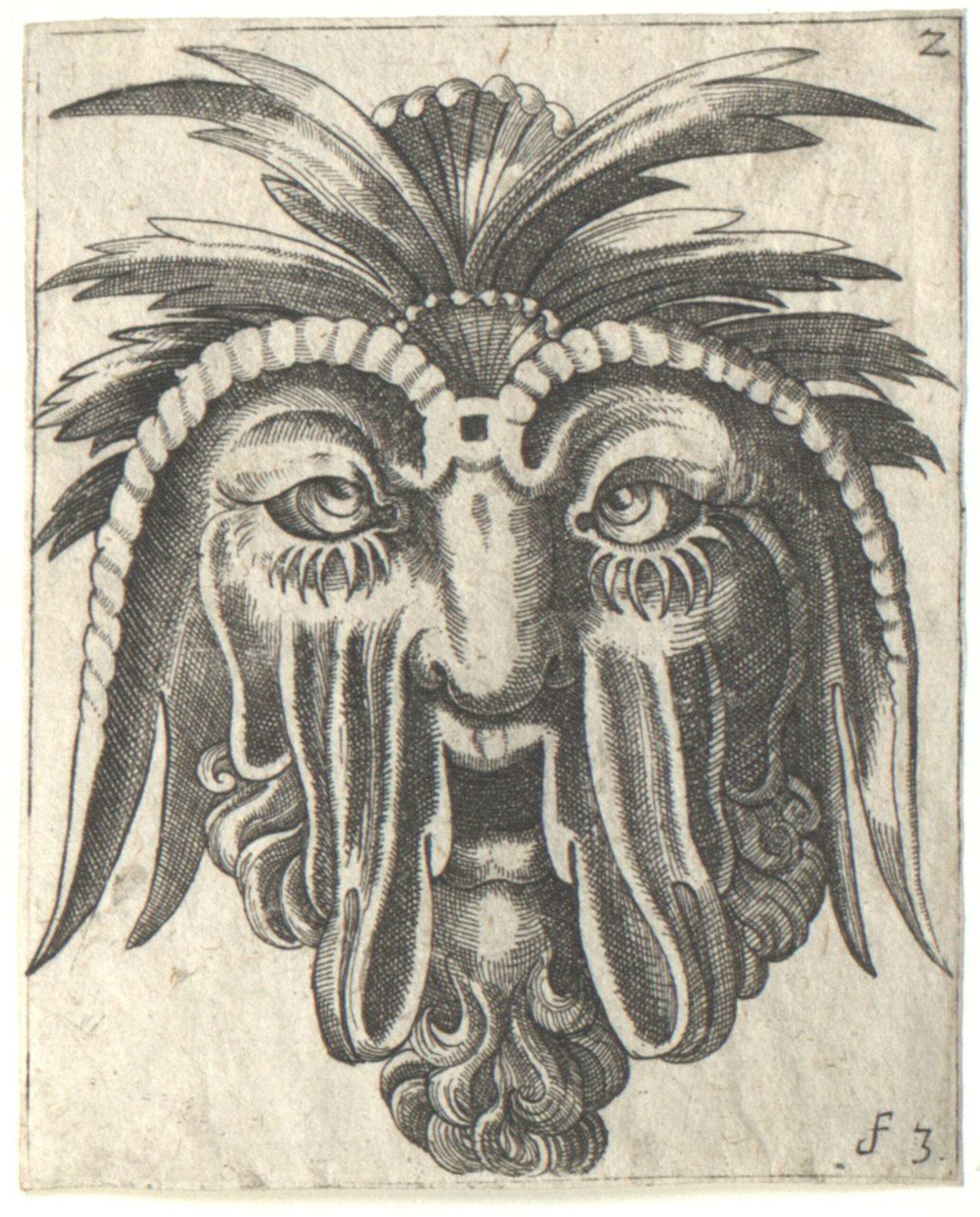- Maskenkopf, Blatt 2 aus einer Folge von Aufsatzhälften und Masken, Kopien nach Frans Huys (vom Bearbeiter vergebener Titel)