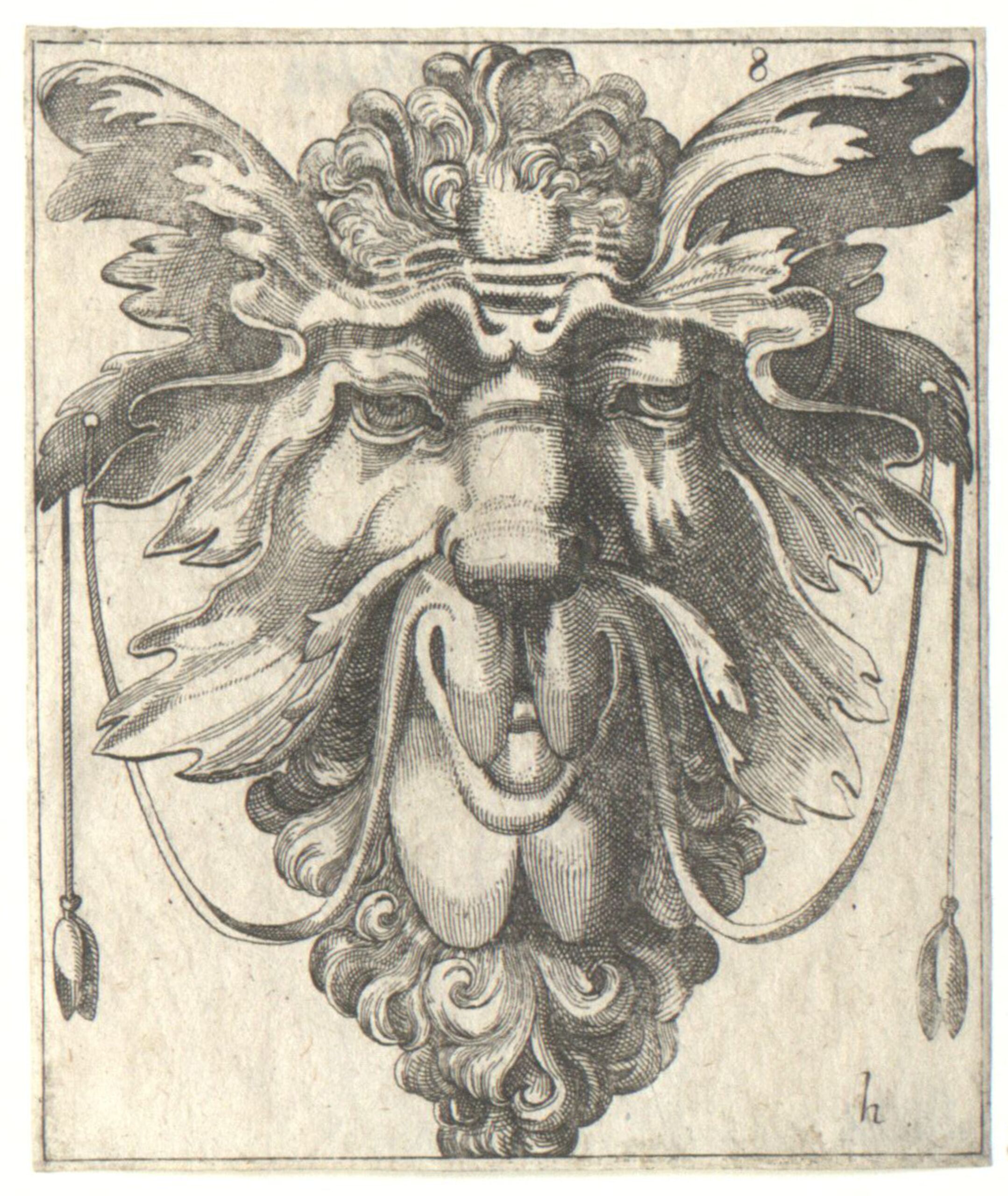 - Maskenkopf, Blatt 8 aus einer Folge von Aufsatzhälften und Masken, Kopien nach Frans Huys (vom Bearbeiter vergebener Titel)