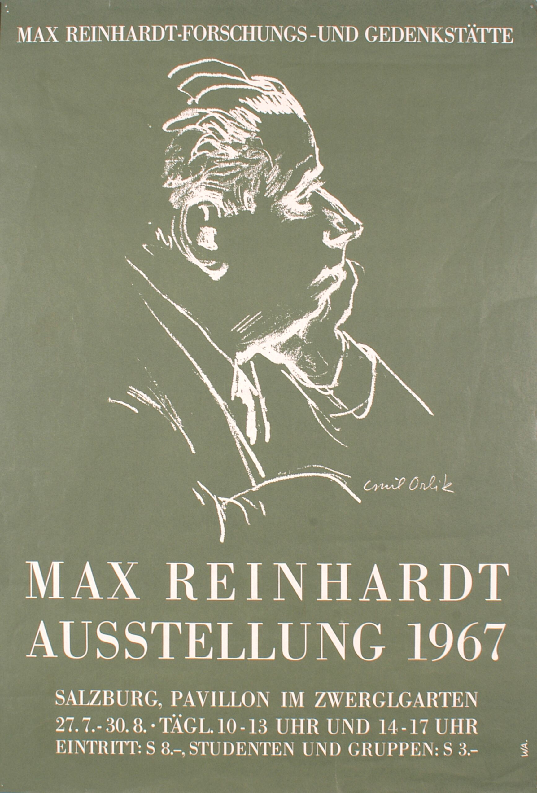 - Text am Objekt: Max Reinhardt Ausstellung 1967. Salzburg vom 27.7. bis 30.8.1967. Pavillon im Zwerglgarten