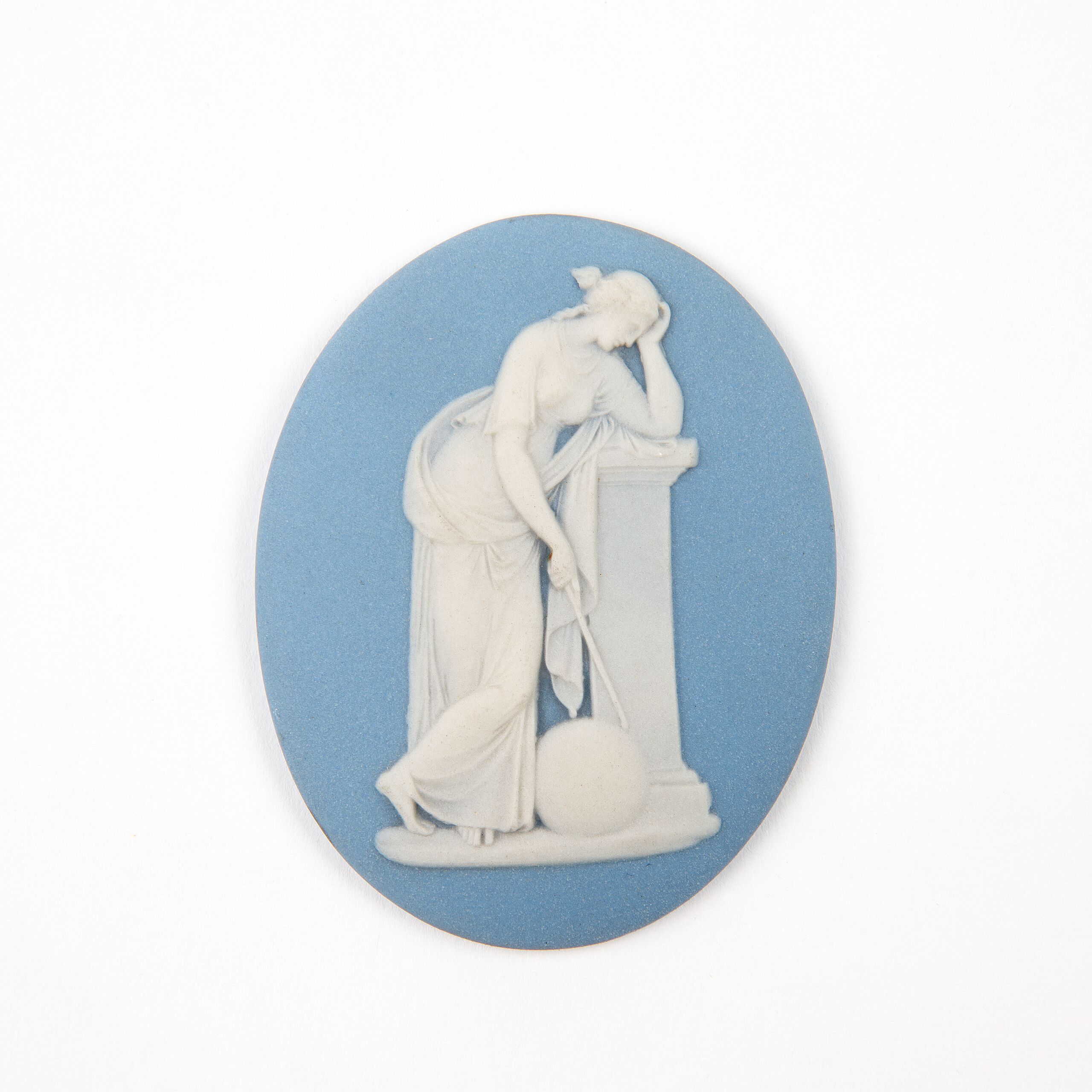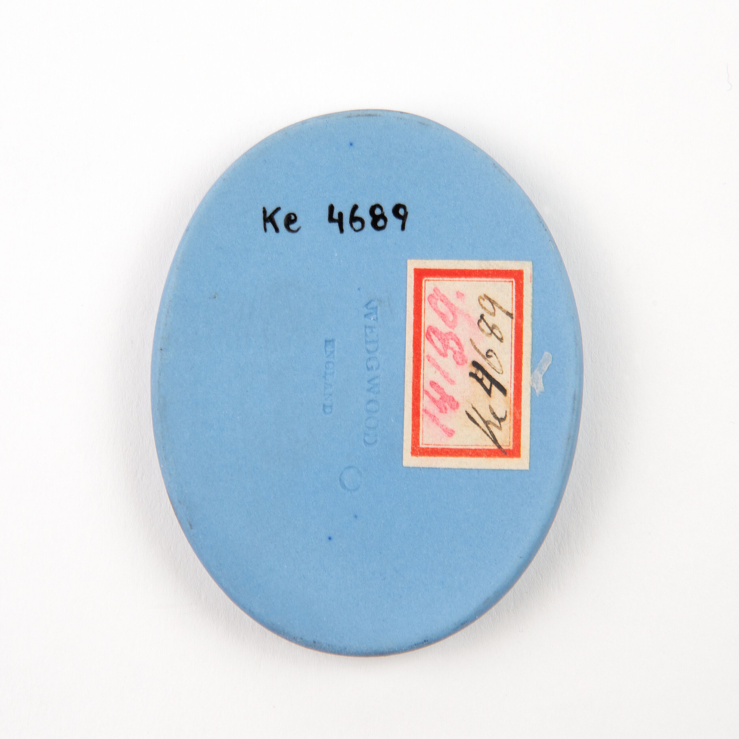 Wedgwood-Imitation. Medaillon mit antikisierender weißer Reliefdarstellung auf blauem Grunde