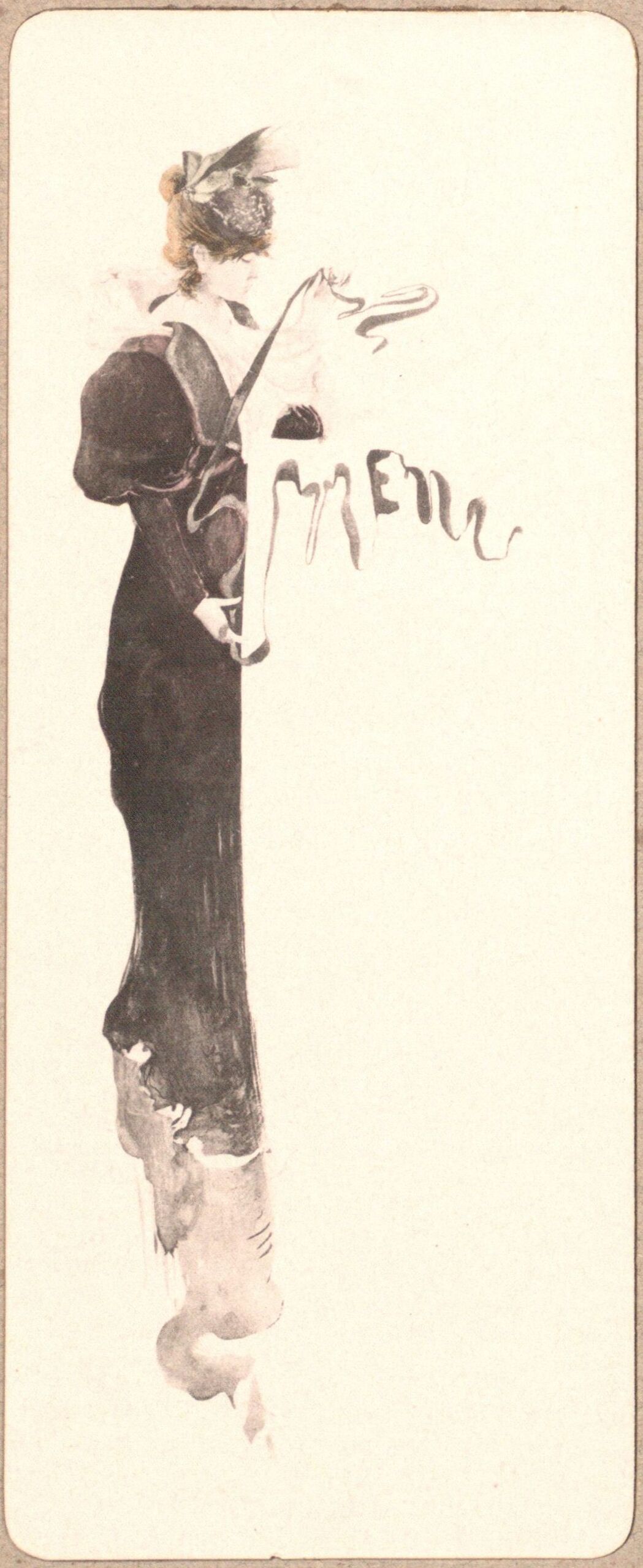 Menükarte, Menükarte mit der Darstellung einer eleganten Dame, Anonym, MAK Inv.nr. KI 7476-37