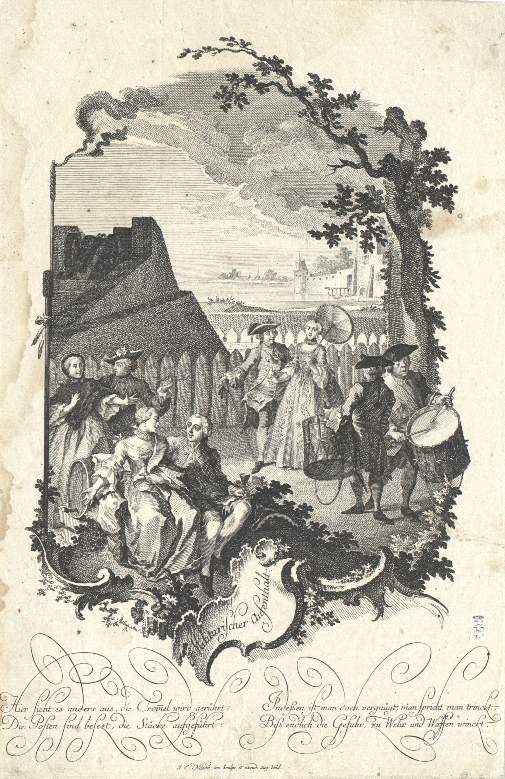 - Text am Objekt: Militarischer aufenthalt / Hier sieht ... Waffen winckt / J. E. Nilson inv. Sculps. et excud. Aug. Vind.