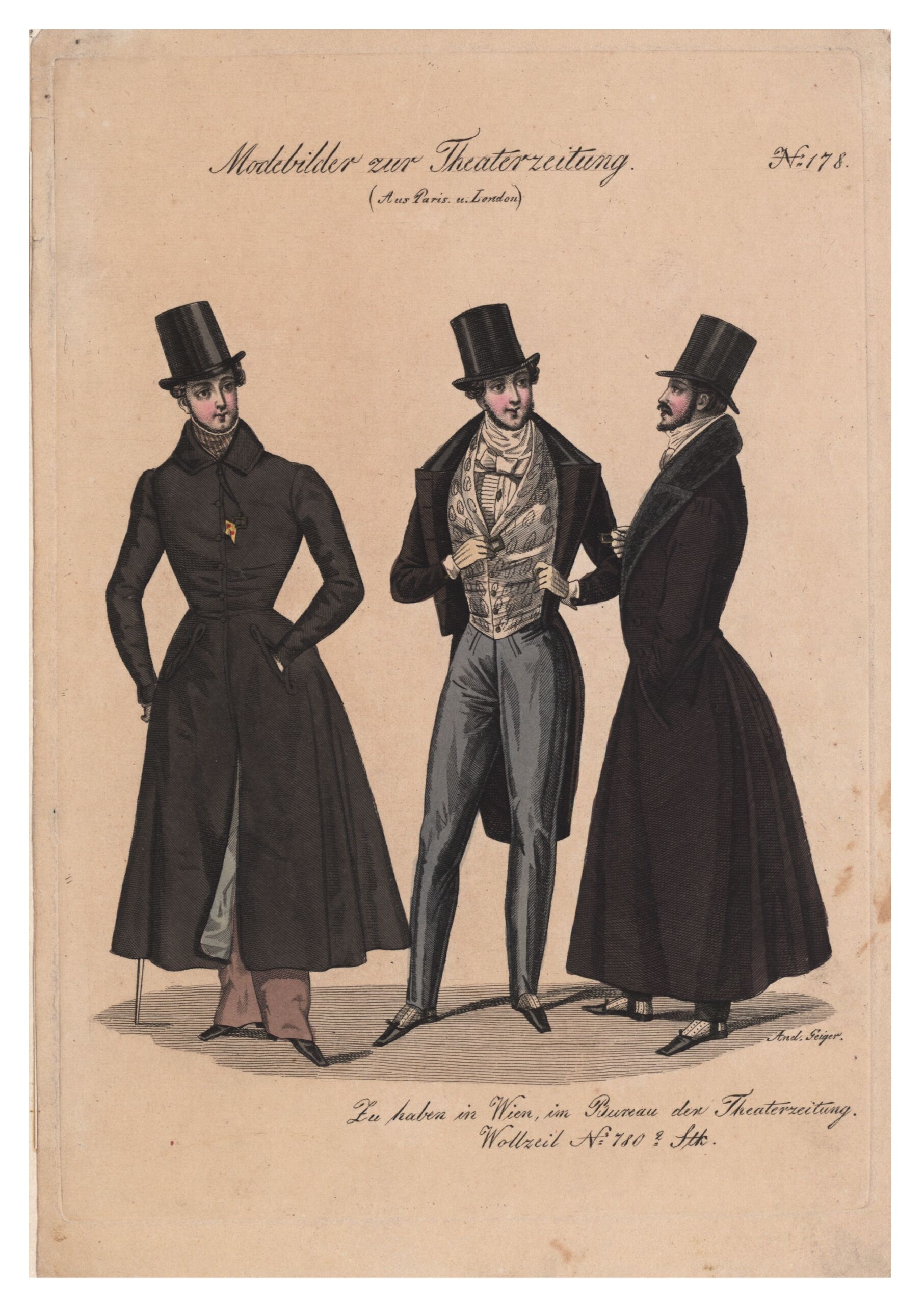- Text am Objekt: Modebilder zur Theaterzeitung. No. 178 / (Aus Paris.) / Zu haben in Wien, im Bureau der Theaterzeitung. / Wollzeil No. 780, 2t Stk.