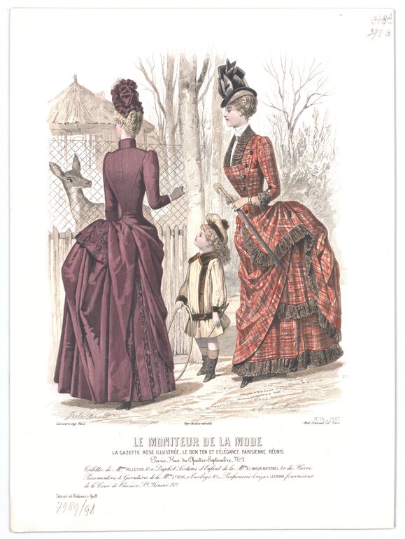 - Text am Objekt: 2497; Jules David; E. Tailland; N° 50 1888; Lariviere. imp. Paris; Reproduction Interdite; Abel Goubaud Ed. Paris; Le Moniteur de la Mode, la gazette rose le bon ton & l'elégance parisienne réunis; Paris. Rue du Quatre-Septembre. N° 3 / [...] / Entered at Stationer's Hall