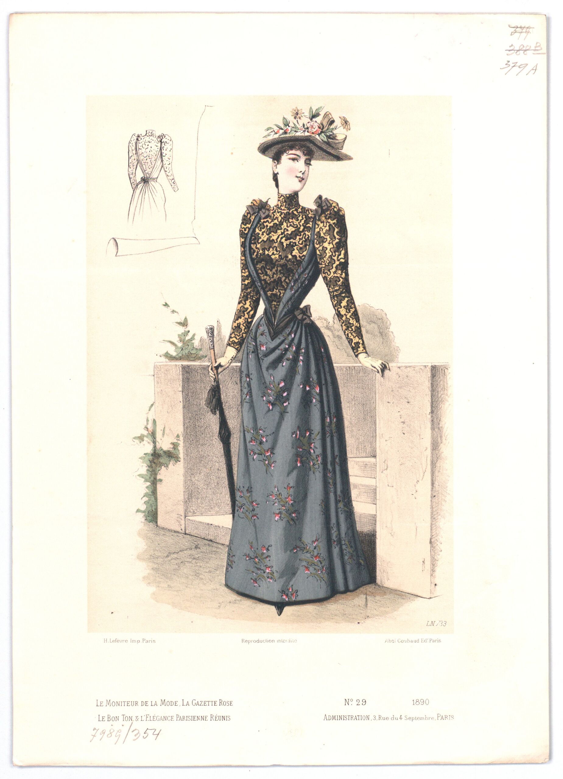 - Text am Objekt: LN 733; H. Lefévre. Imp. Paris; Reproduction Interdite; Abel Goubaud Editeur; Le Moniteur de la Mode, la gazette rose / le bon ton & l'elégance parisienne réunis; N° 29 1890 / Administration, / 3, Rue du 4 Septembre, PARIS