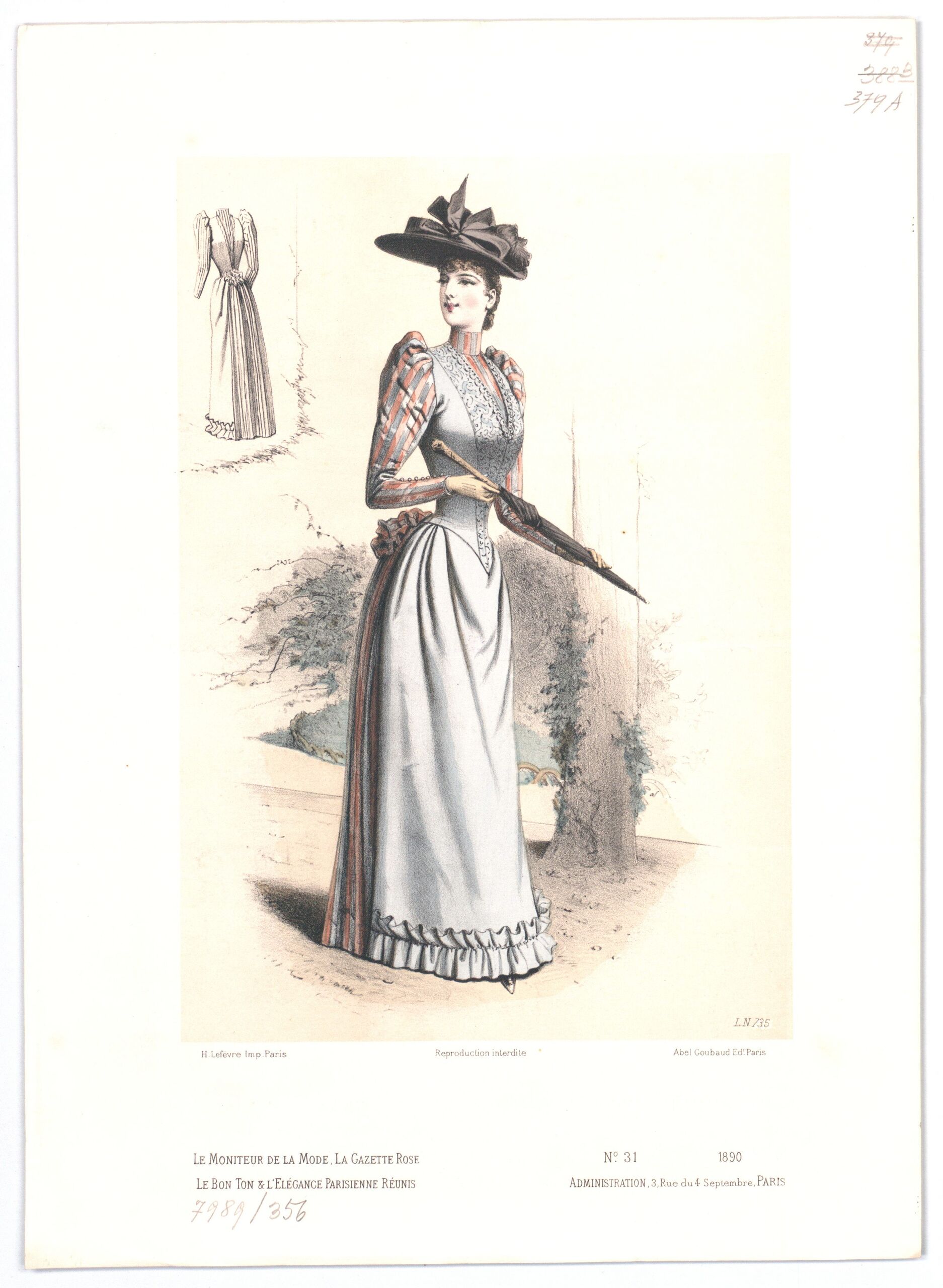 - Text am Objekt: LN 735; H. Lefévre. Imp. Paris; Reproduction Interdite; Abel Goubaud Editeur; Le Moniteur de la Mode, la gazette rose / le bon ton & l'elégance parisienne réunis; N° 31 1890 / Administration, / 3, Rue du 4 Septembre, PARIS
