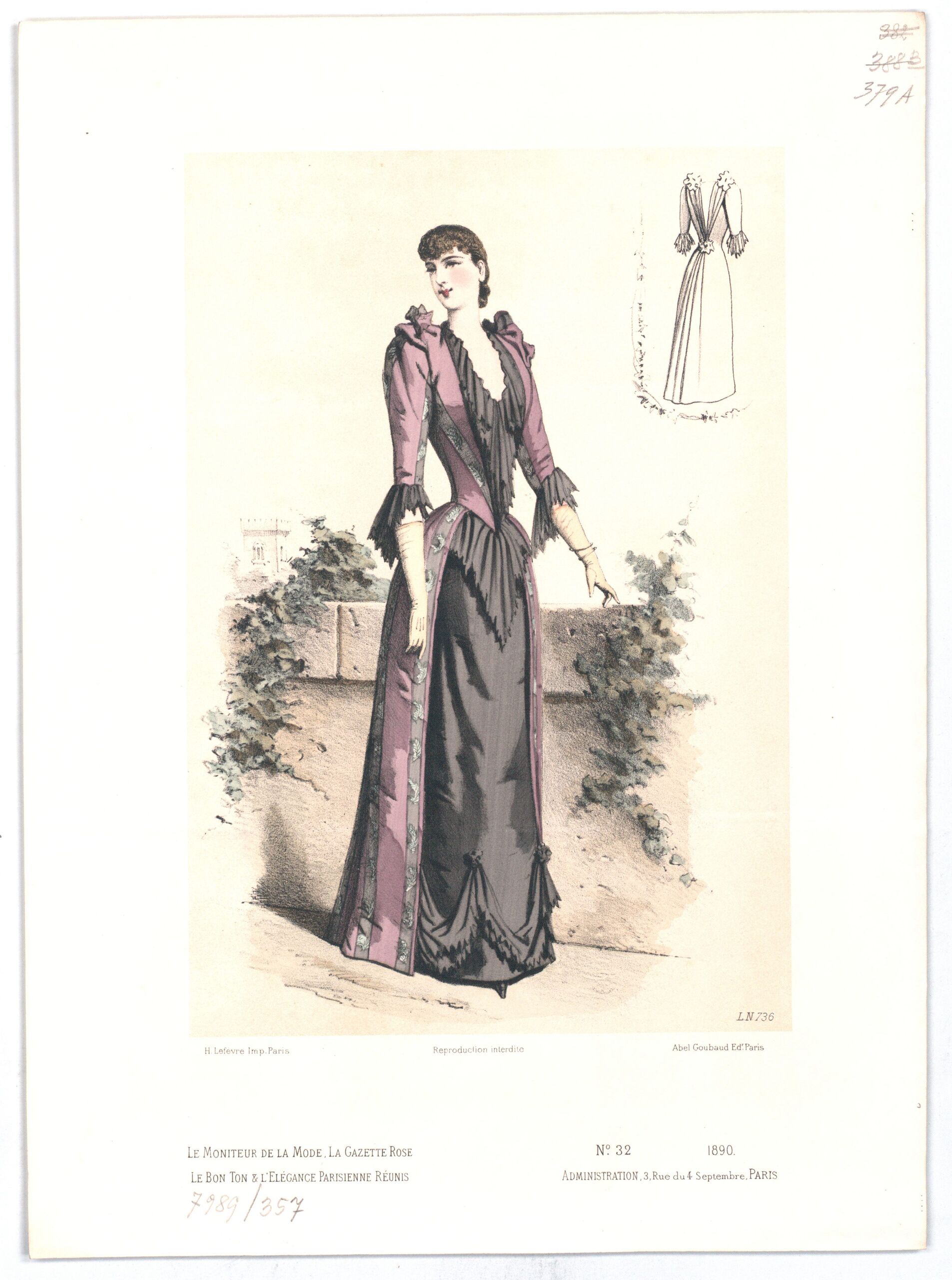 - Text am Objekt: L. N. 736; H. Lefévre. Imp. Paris; Reproduction Interdite; Abel Goubaud Editeur; Le Moniteur de la Mode, la gazette rose / le bon ton & l'elégance parisienne réunis; N° 32 1890 / Administration, / 3, Rue du 4 Septembre, PARIS