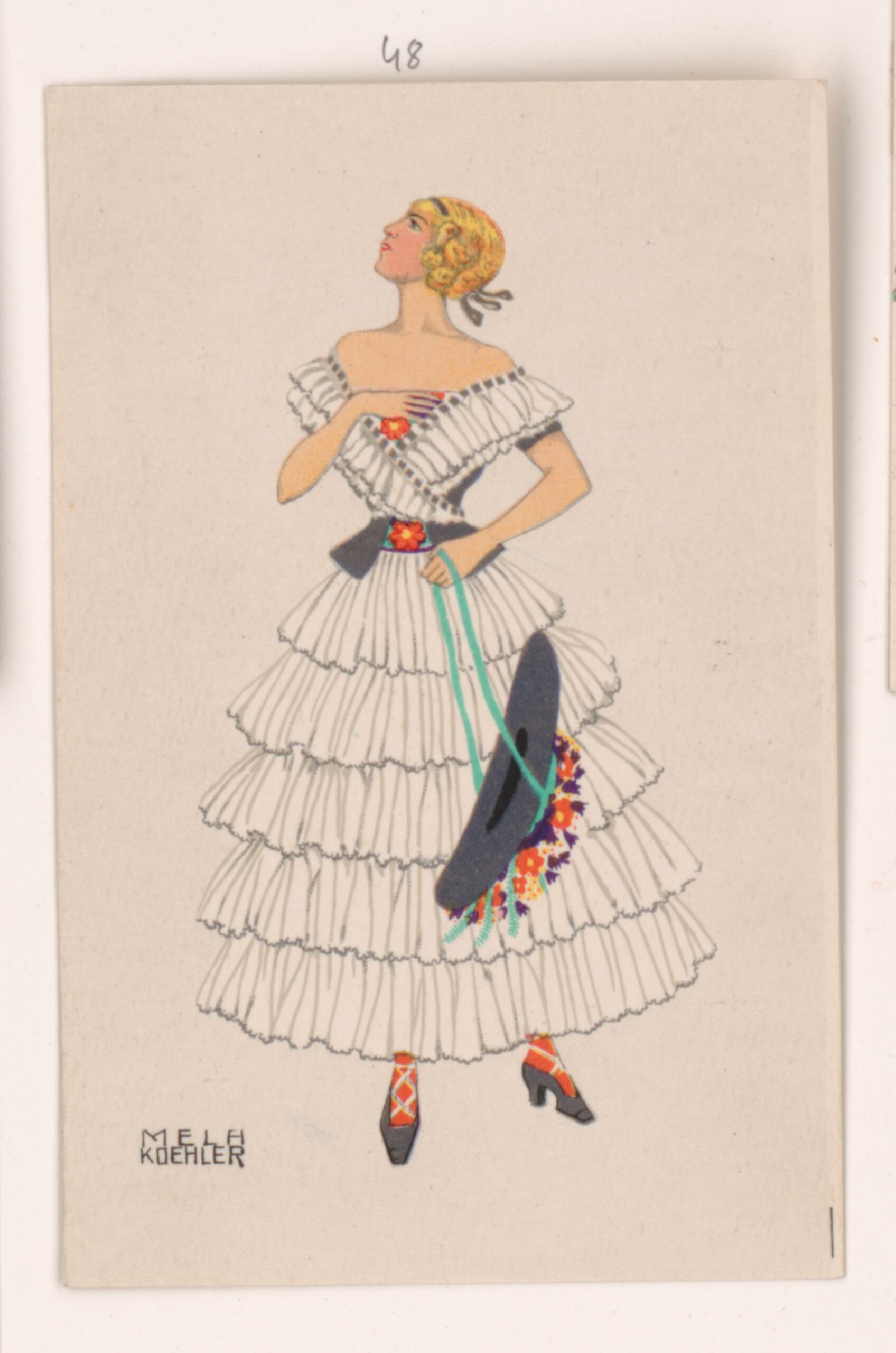 Modebild, Modeentwurf, Postkarte Nr. 746-4, Postkartenverlag Brüder Kohn (B.K.W.I.), MAK Inv.nr. KI 9121-48