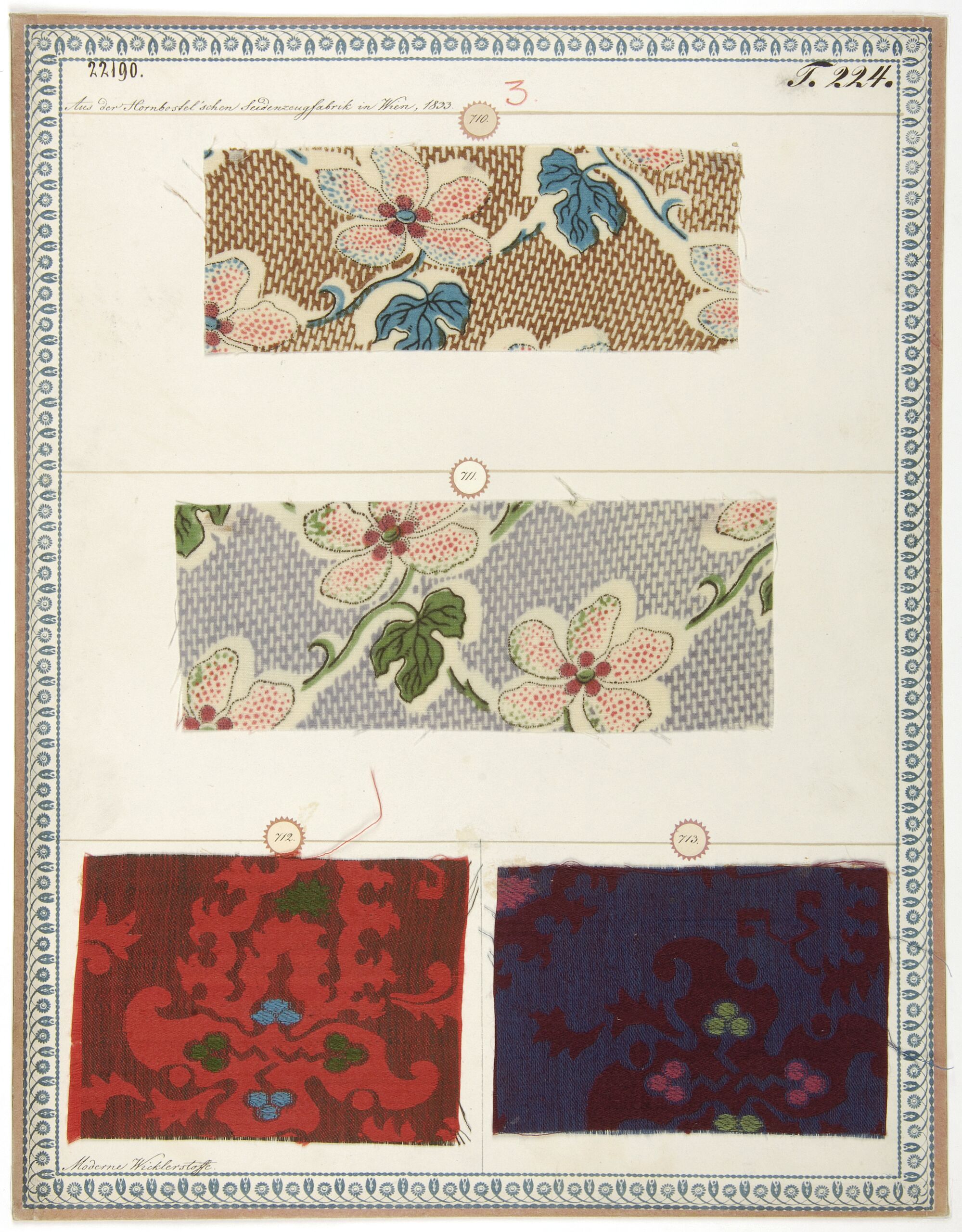 - Beschriftung (Vorderseite) : Aus Chr. G. Hornbostel's Seidenzeugmanufactur in Wien, 1833. / Moderne Wicklerstoffe.
