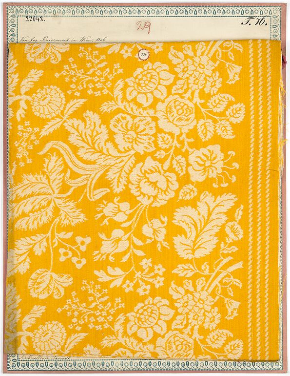- Beschriftung: Von Jos. Kniezaurek in Wien. / Aus der allgem. Gewerbspro.-Ausstellung in Wien, 1835. / Möbel-Bordüren von halbwollenem Damast