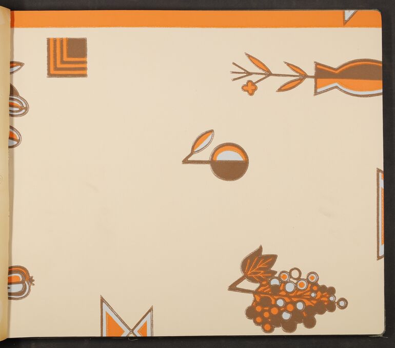 der täglichen Verkaufsarbeit: Musterbücher wie dieses erleichterten Kundinnen die Auswahl unter der Vielzahl von Vorlagen. Viele der Entwürfe wurden sowohl auf Tapeten als auch auf Stoffe gedruckt. Tapeten wurden von der Wiener Werkstätte auch in anderen Objekten, etwa zur Schrankverkleidung, verwendet. Das Archiv der Wiener Werkstätte, das sich heute im MAK befindet, beinhaltet zahlreiche ähnliche Dokumente, die die praktische Arbeit der berühmten Produktion illustrieren.