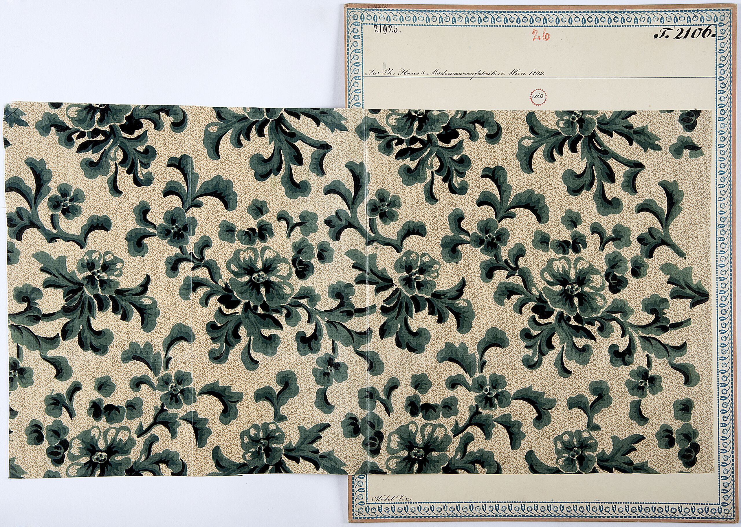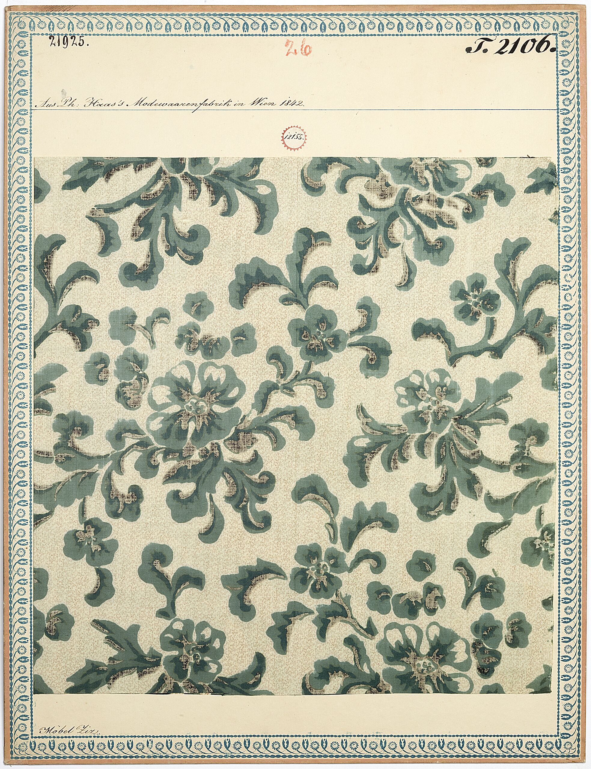 - Beschriftung (Vorderseite) : Aus Ph. Haas's Modewaarenfabrik in Wien 1842. / Möbel Ziz.