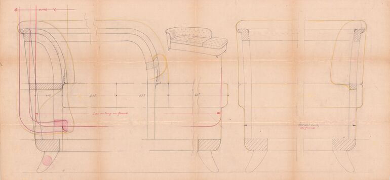 - Möbelriss eines Armlehnsessels (vom Bearbeiter vergebener Titel)